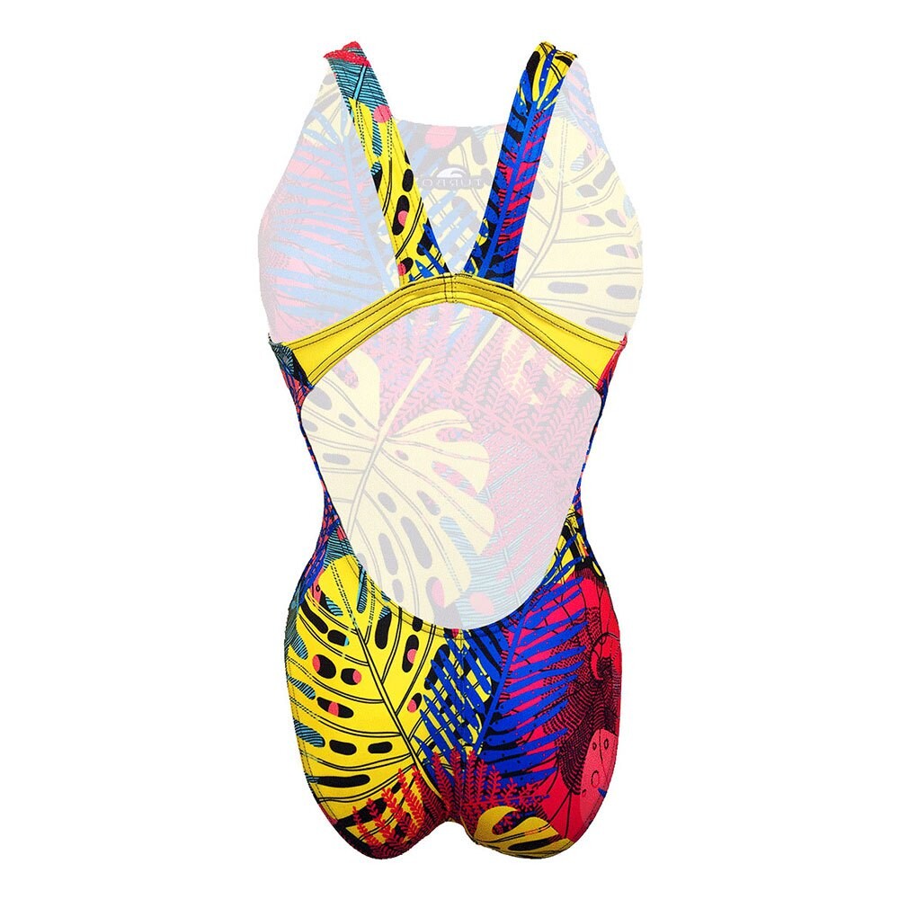 Этот турбо-костюм специально разработан для плавания. Широкие лямки обеспечивают полную свободу движений и в то же время лучшее сцепление, чем тонкие лямки. Широкие лямки не оказывают такого сильного давления на тело и могут быть более удобными. Он изготовлен из лучшей ткани на рынке и имеет двойную переднюю подкладку. Он устойчив к хлору из бассейна и ультрафиолетовым лучам. По этой причине интенсивность его цветов останется неизменной с течением времени.