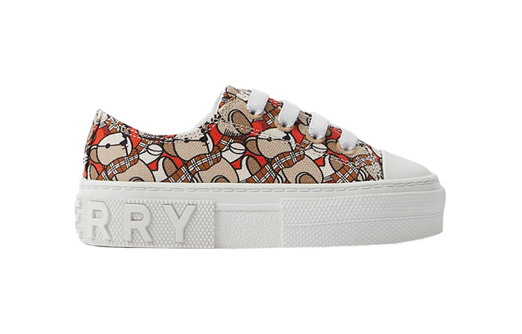 Низкие кеды Burberry из хлопка с принтом плюшевого мишки, круглым носком и верхом в виде плюшевого мишки. Простая цветовая гамма делает их повседневными и универсальными.