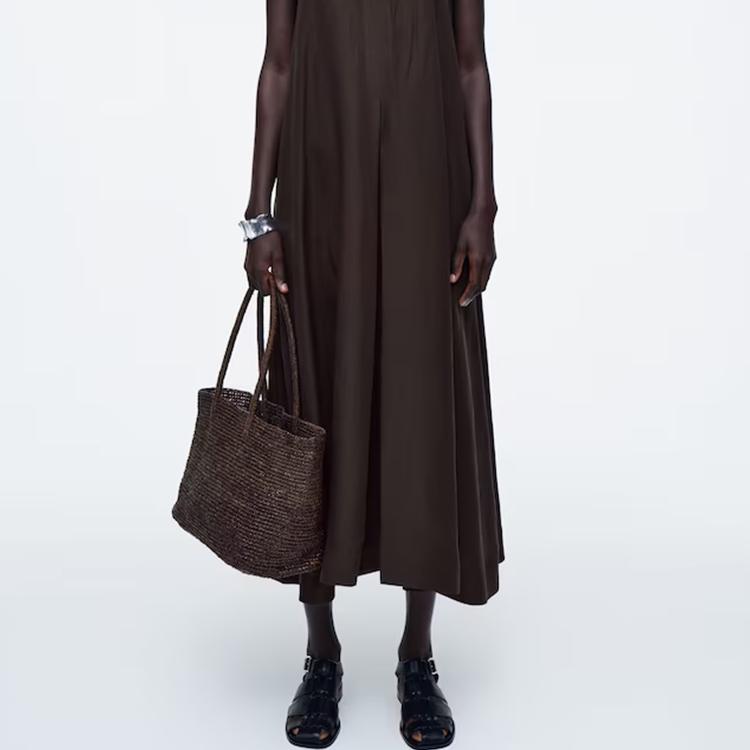 COS Сумка-шоппер из соломки, мини-женская сумка dark brown