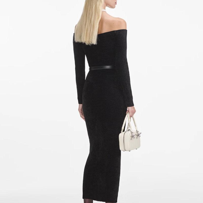 Платье миди Chenille с автопортретом Self-portrait, черный 67 799₽