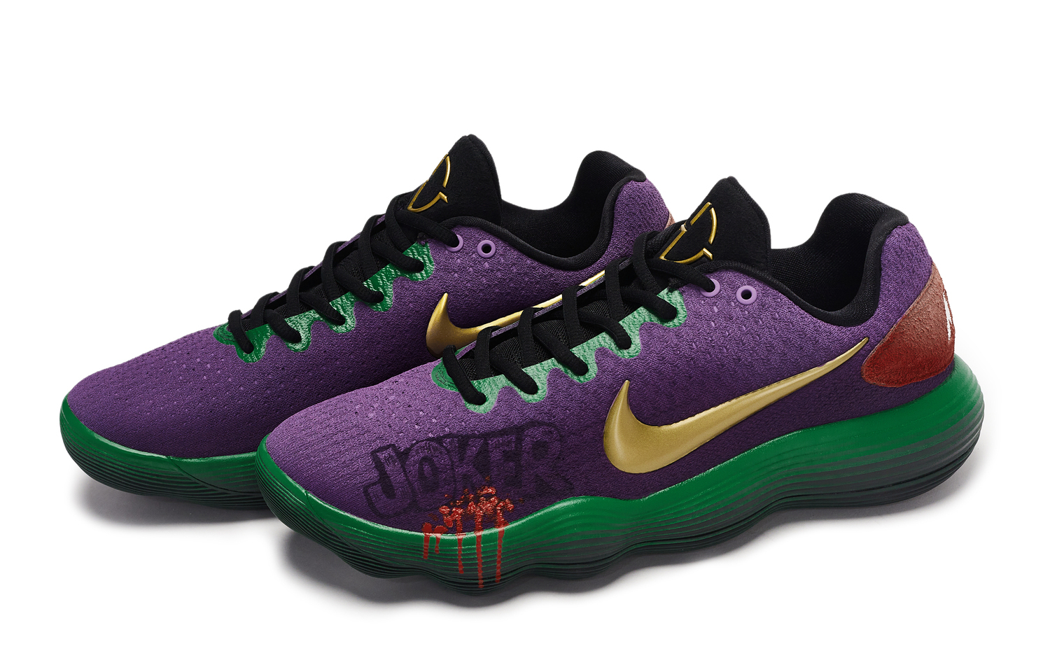 Эти кроссовки созданы на основе оригинальной модели Nike Hyperdunk 2017 - стильных, удобных, нескользящих и прочных баскетбольных кроссовок с низким верхом для мужчин и женщин в черном цвете (артикул IH0634-070). Цветовая гамма включает черный, фиолетовый и зеленый цвета с красными акцентами, что создает уличный, технологичный образ.
