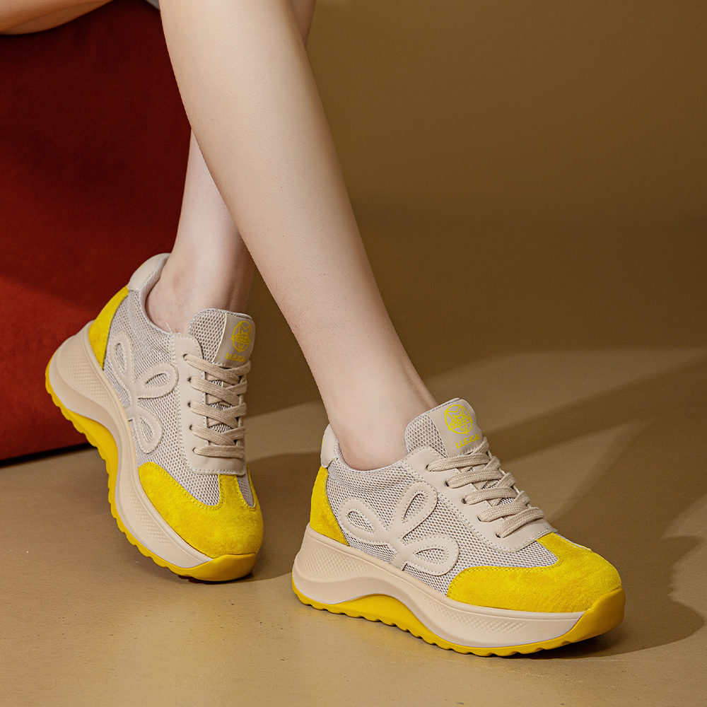 Дышащие утолщенные кроссовки на платформе для увеличения роста Low Top POOQ, желтый