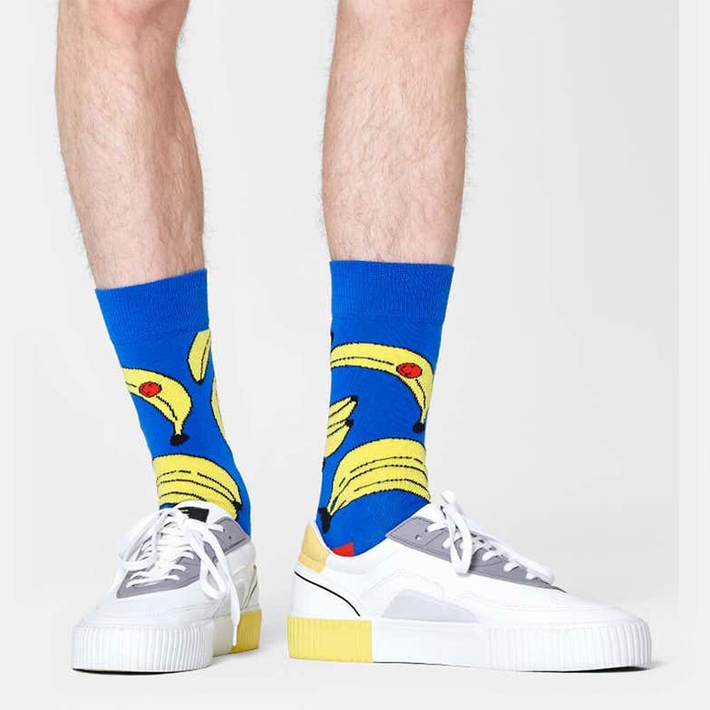 Пара высоких носков из мягкой ткани с другим принтом, которые улучшат ваш образ. Самые модные носки на данный момент Happy Socks! Эти носки очень популярны благодаря оригинальному рисунку и высокому качеству. Пара ярких носков в стиле банана.