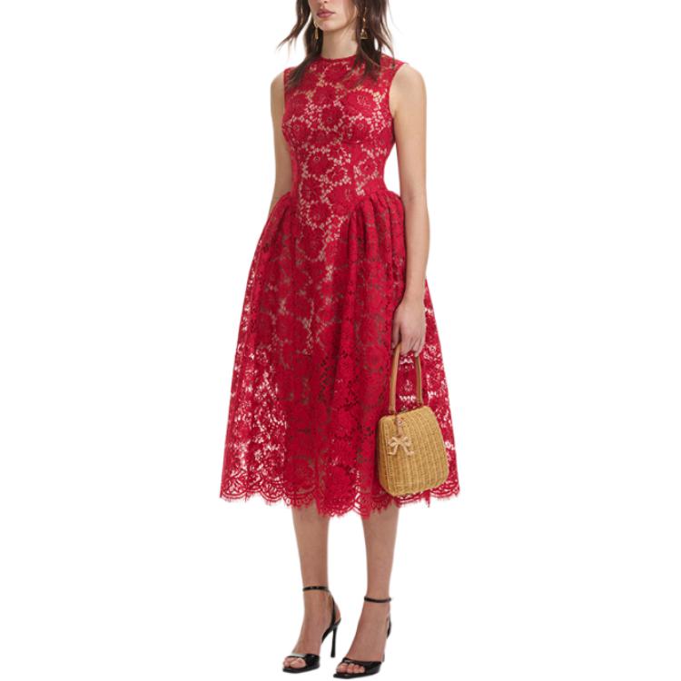 Платье миди Self portrait Fine Lace Self-portrait, красный 143 199₽