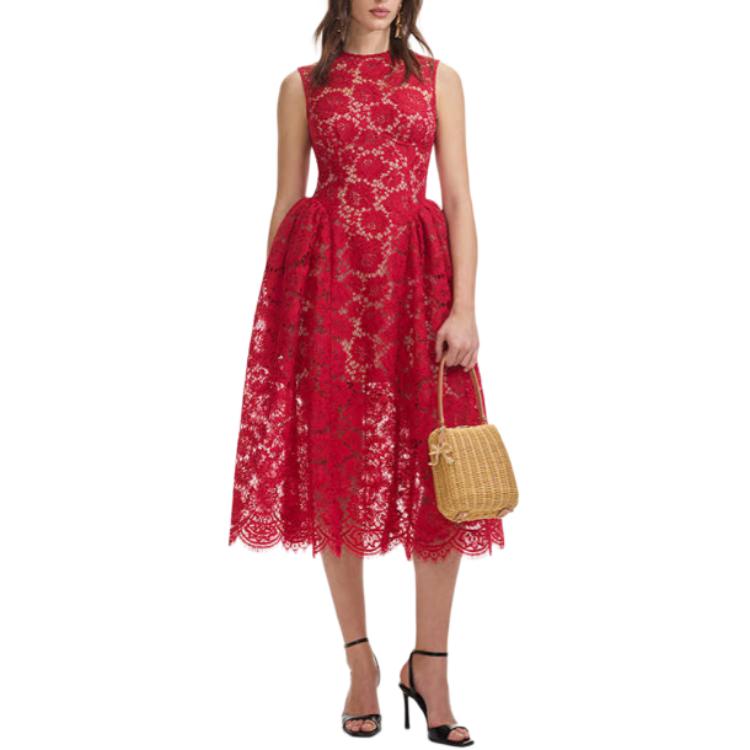 Платье миди Self portrait Fine Lace Self-portrait, красный
