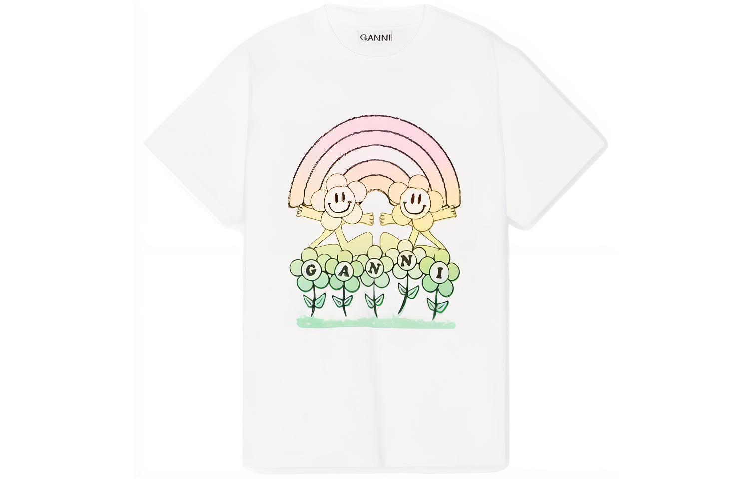 GANNI Футболка Basic Jersey Rainbow Relaxed 'Bright White'