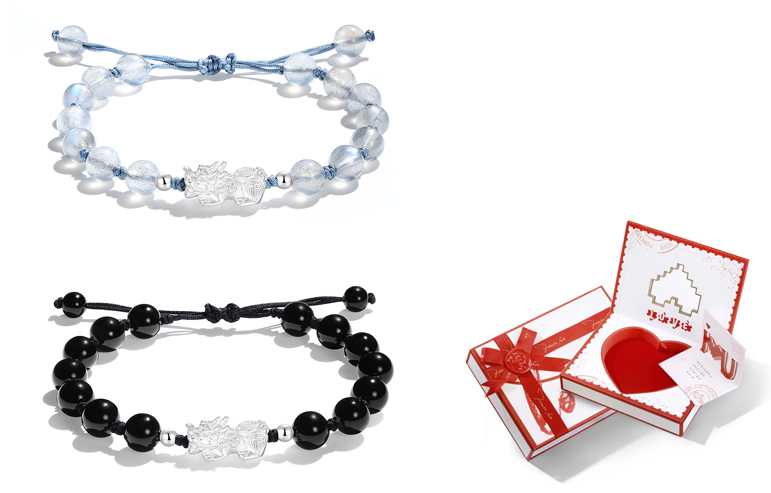 Цвет: черный агат + красный агат - романтическая розовая коробка
