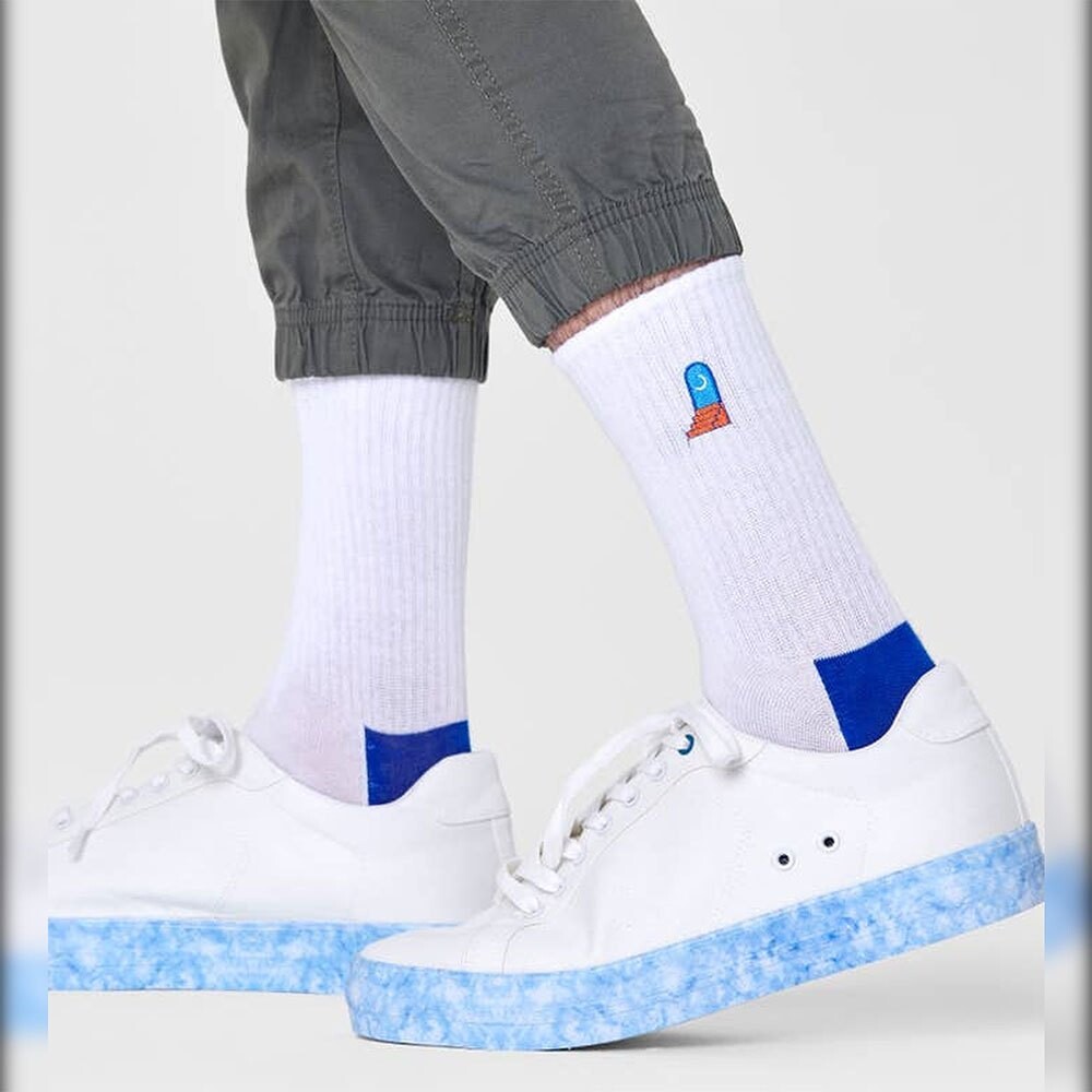 Пара длинных носков из мягкой ткани с другим принтом, которые улучшат ваш образ. Самые модные носки на данный момент Happy Socks! Эти носки очень популярны благодаря оригинальному дизайну и высокому качеству. Пара ярких носков в стиле колор-блок серого, синего, белого и оранжевого цветов.