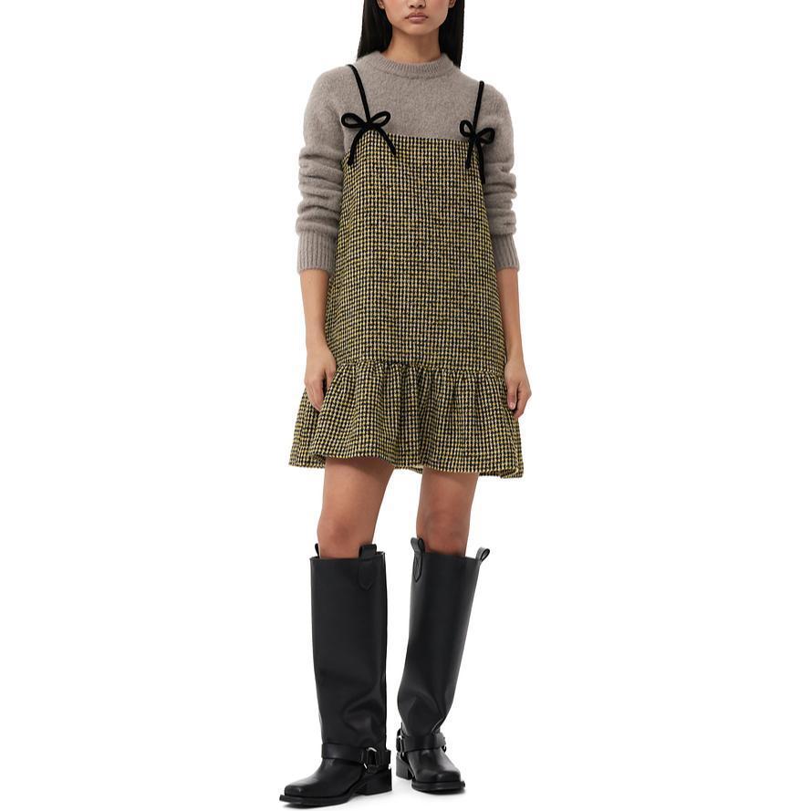 Безрукавное платье-мини в клетку houndstooth GANNI, желтый