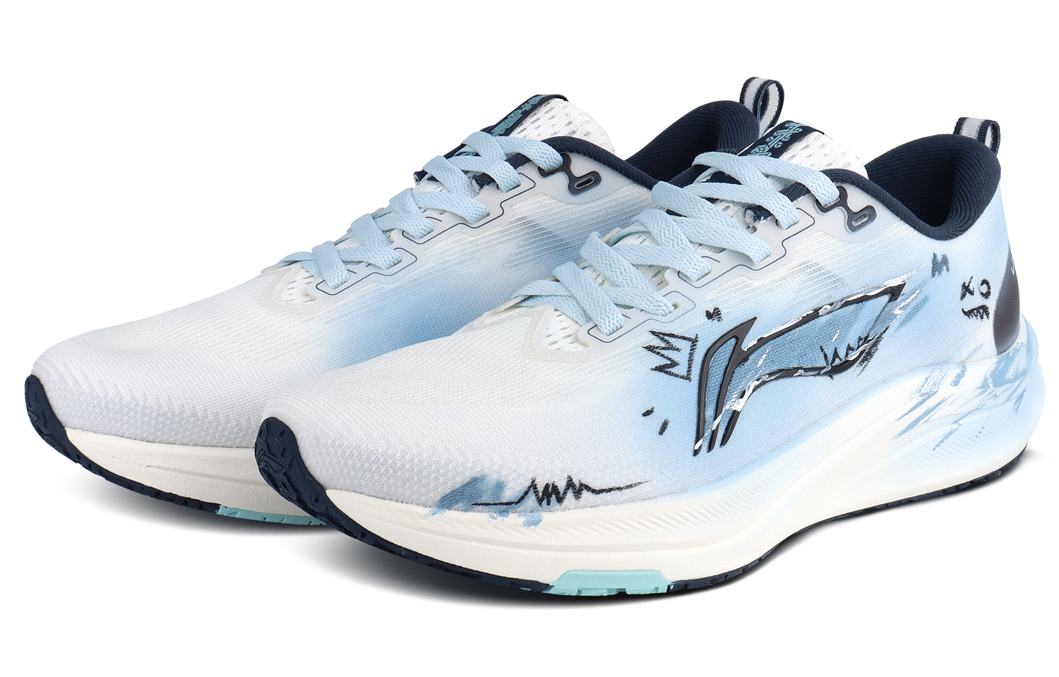 Эти кроссовки, изготовленные на заказ, основаны на модели Li-Ning Chitu 8. Дизайн вдохновлен движением ветра и теней на картине. Кроссовки выполнены в преимущественно сине-белой цветовой гамме и расписаны вручную профессиональными красителями. Цветовая гамма сдержанная, но роскошная, а узоры элегантны и динамичны.