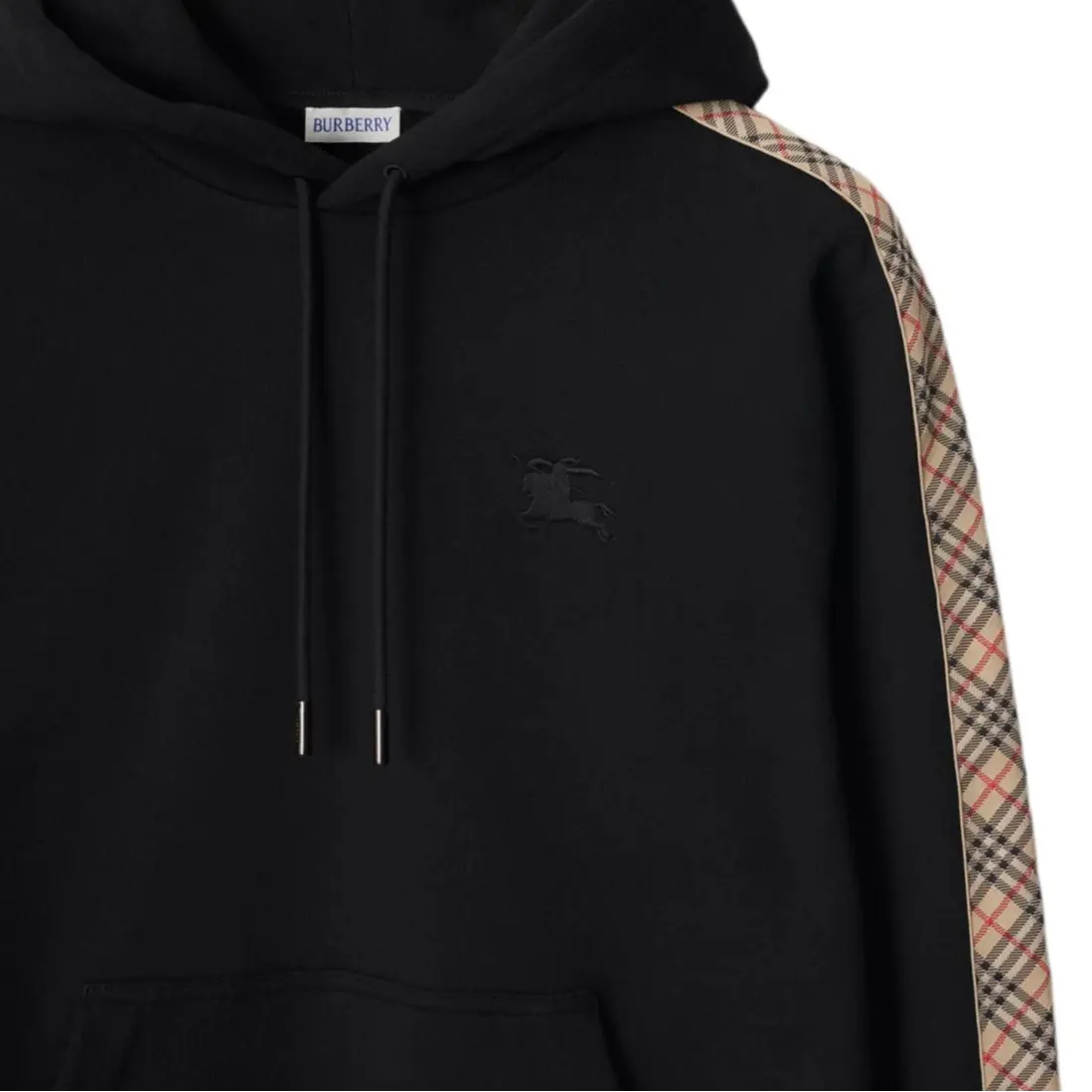 Хлопковый худи Check trim Burberry, черный 60 783₽