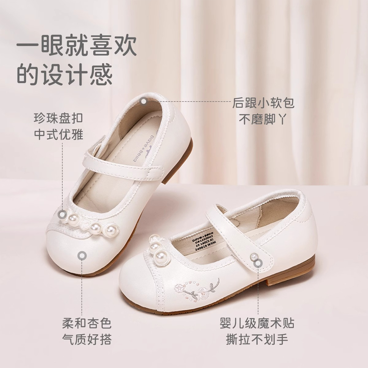 Детские кожаные туфли для дошкольников DAVE&BELLA, Apricot