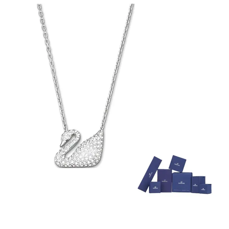 Этот кулон в виде лебедя из белого золота, украшенный кристаллами в технике паве, элегантен и притягивает взгляд. Изображение лебедя излучает пленительное сияние! Кулон подвешен на изящной плоской цепочке. Ожерелье изготовлено преимущественно из кристаллов и сплавов. Внешний слой сплава покрыт драгоценными металлами, а внутренний - специальным прочным сплавом. Драгоценное покрытие представлено восемью металлами: золотом, серебром и металлами платиновой группы (рутением, родием, палладием, осмием, иридием и платиной).