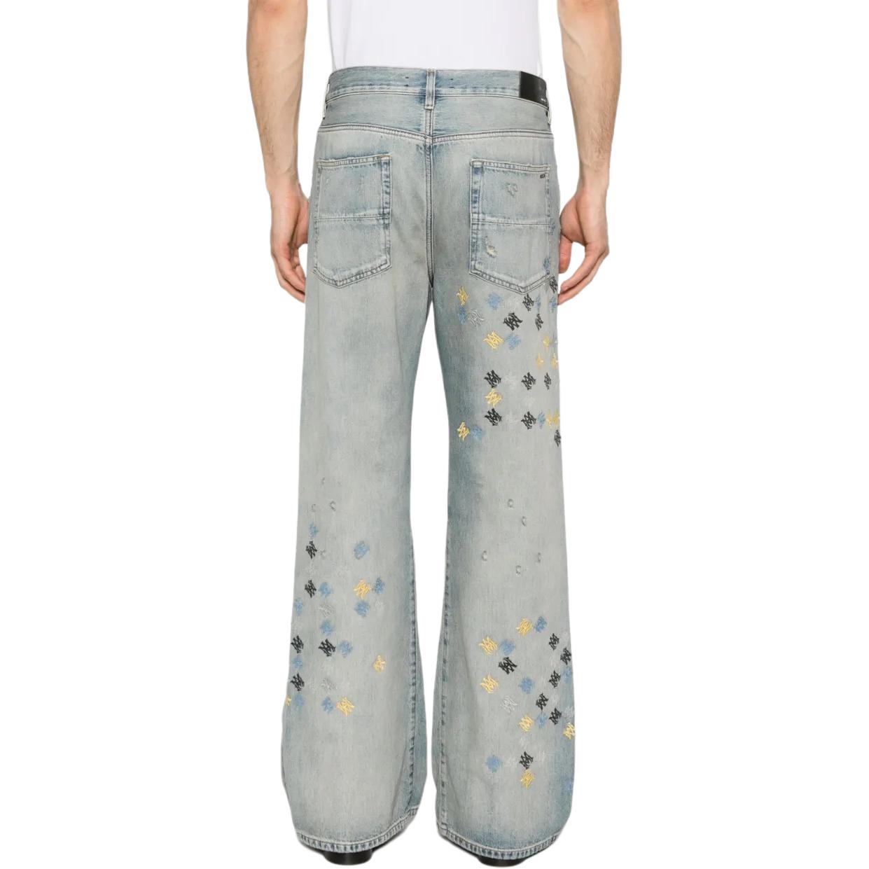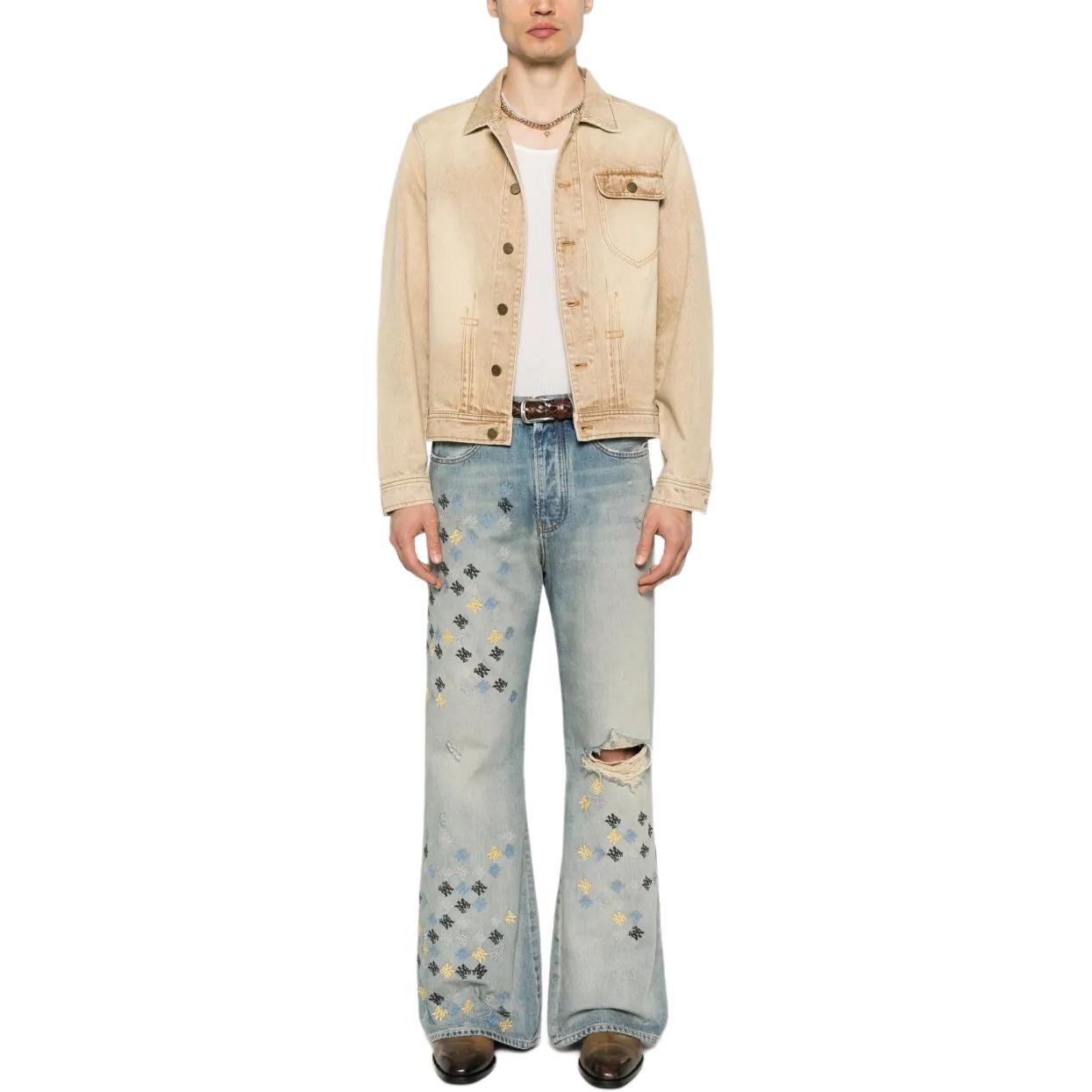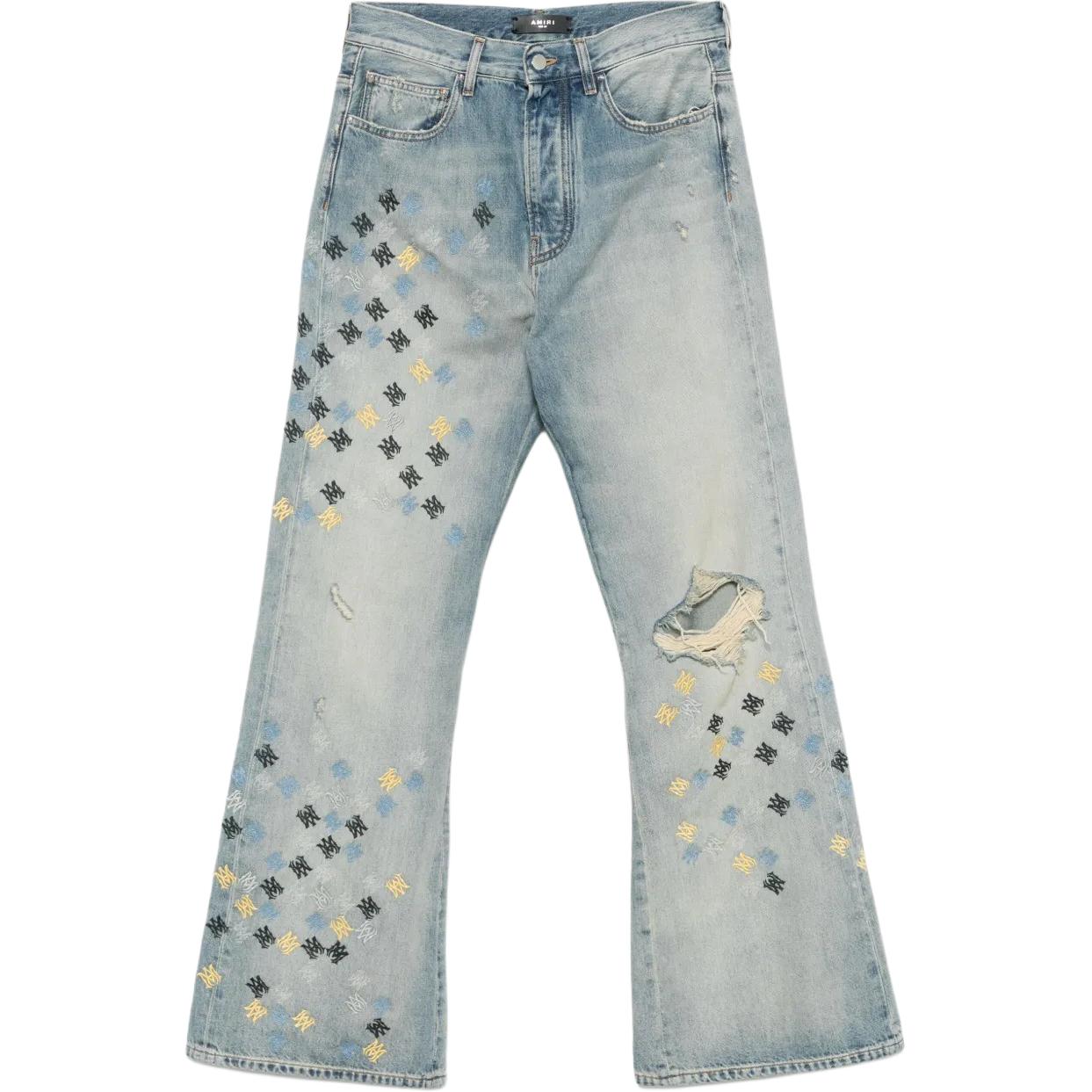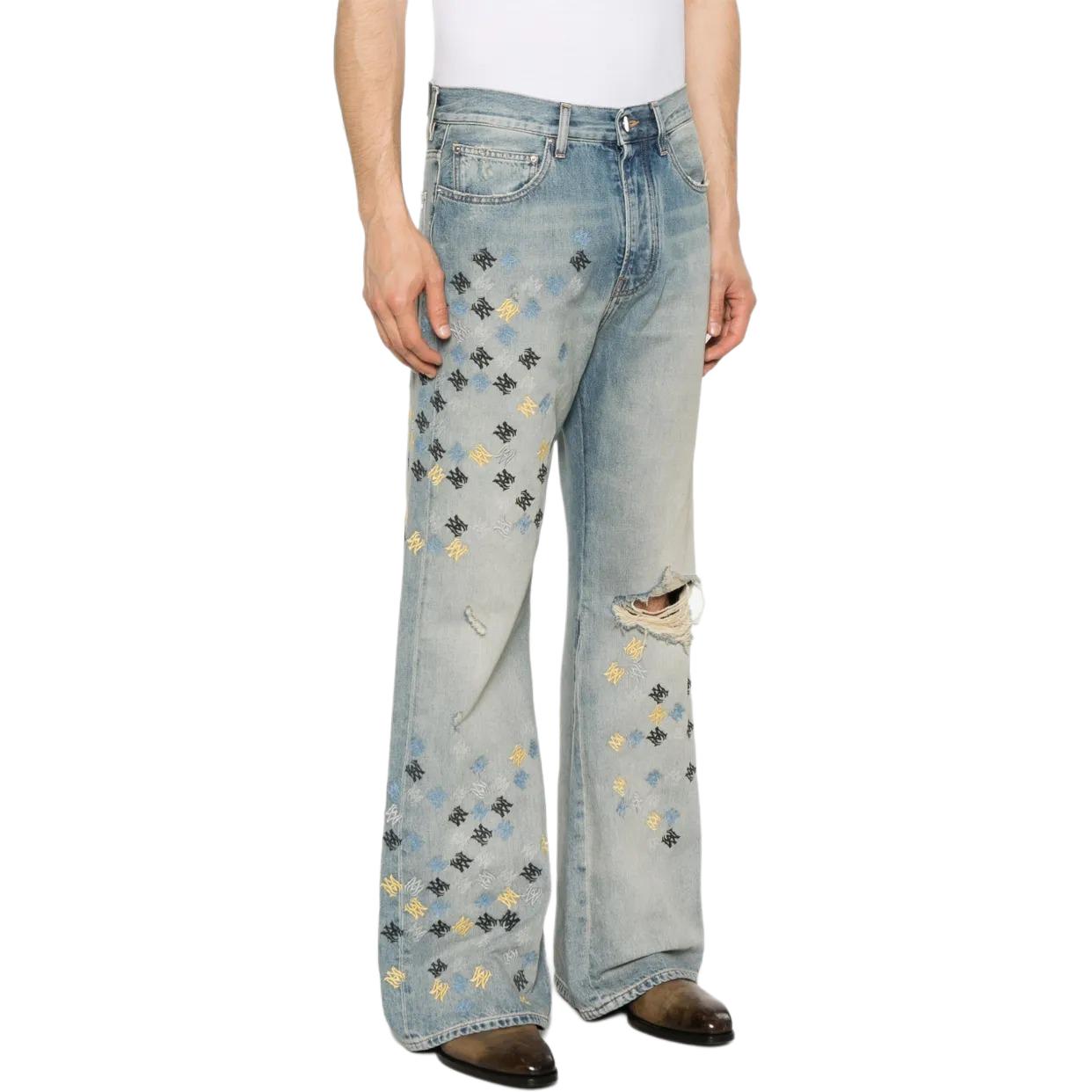 Ма quad вышитые потертые расклешенные джинсы AMIRI, индиго