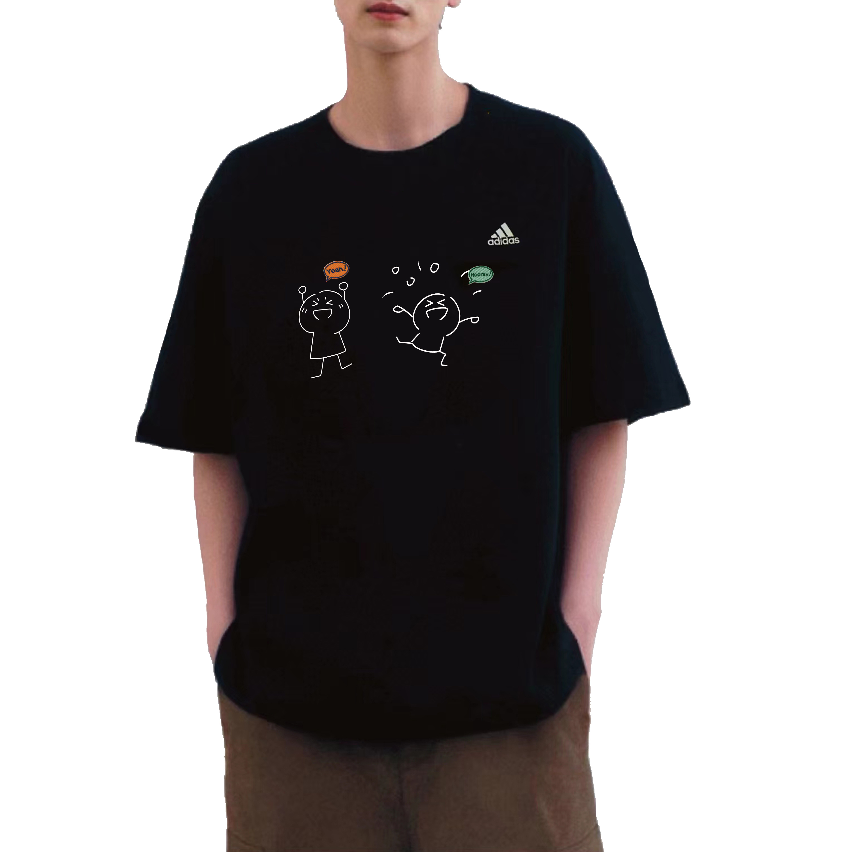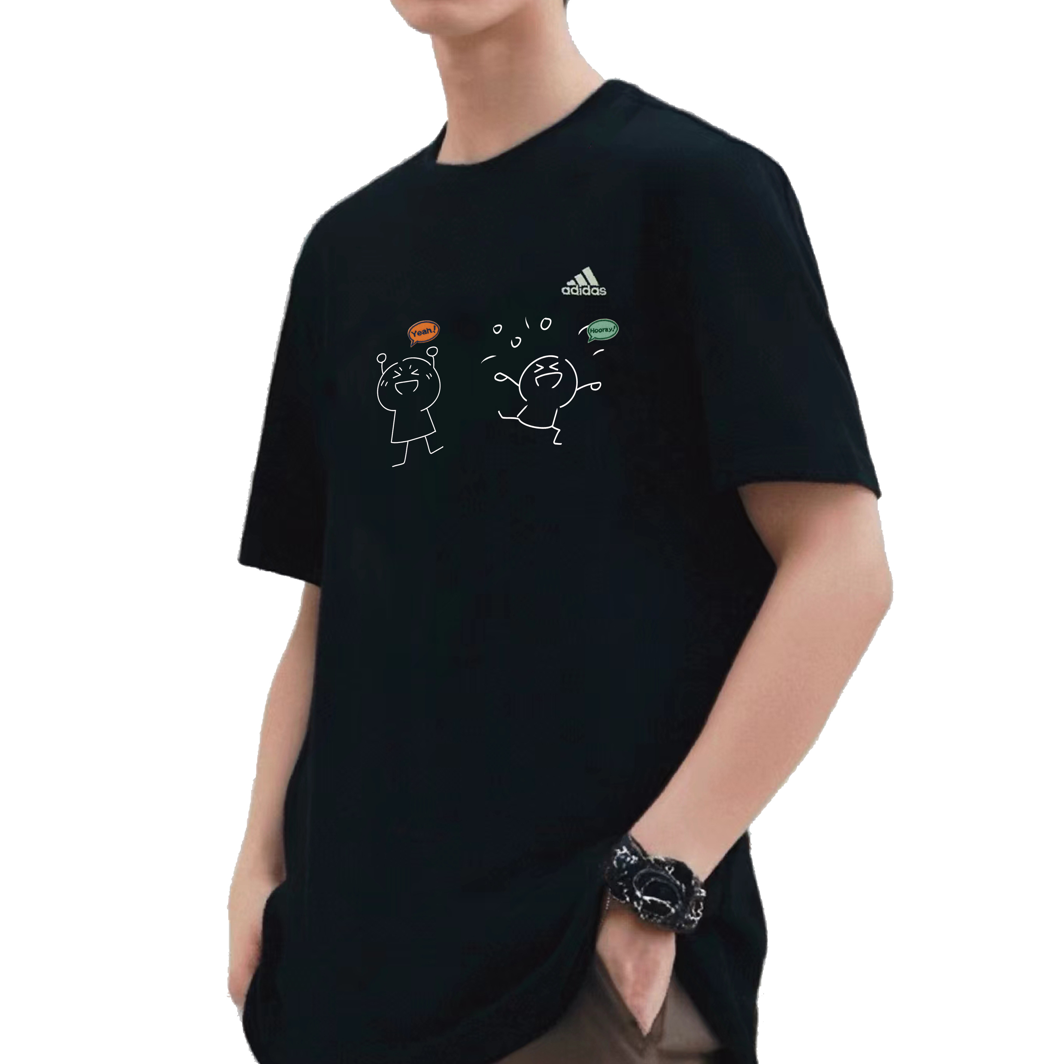 Этот индивидуальный дизайн основан на оригинальной спортивной футболке adidas MUST HAVES с короткими рукавами и однотонным логотипом, унисекс. Персонаж «Happy Forever» очень милый, а вышитые нашивки пришиты вручную для дополнительной изысканности.