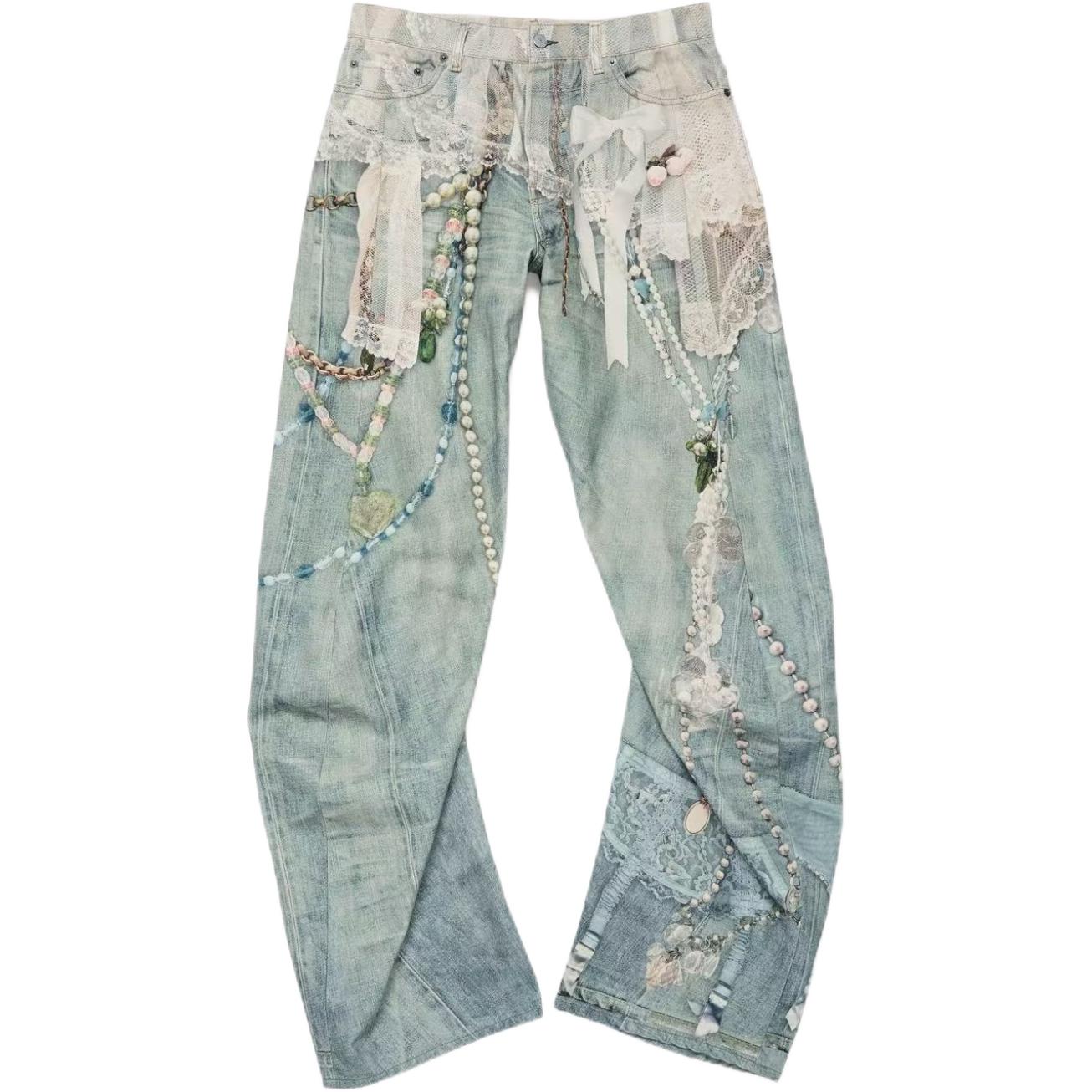 Джинсы с принтом trompe l'œil Acne Studios, светло-голубой 52 179₽