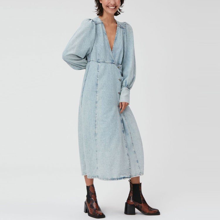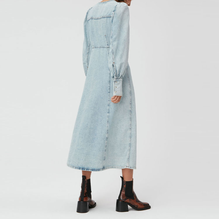 GANNI Длинное платье с длинными рукавами SS22 Women's Blue