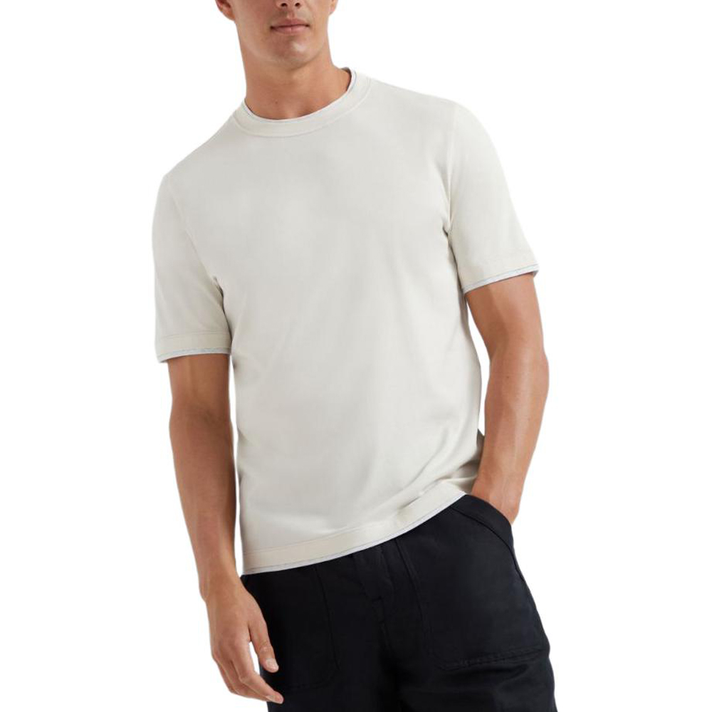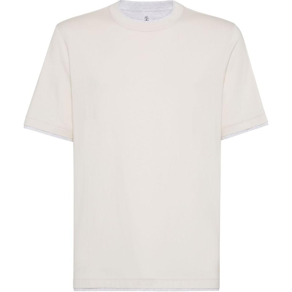 Футболка с многослойными деталями Brunello Cucinelli, Ecru