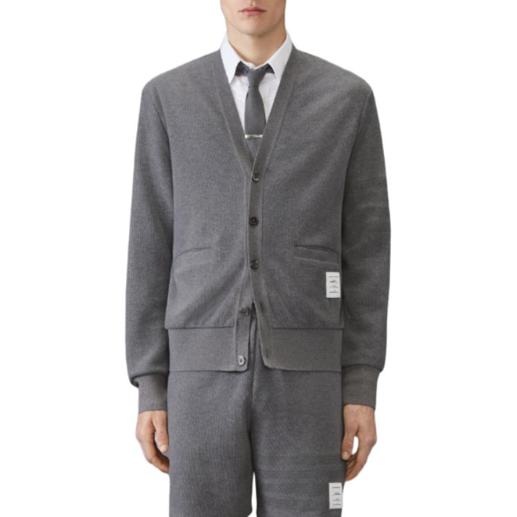 Хлопковый кардиган с v-образным вырезом THOM BROWNE, серый 70 150₽