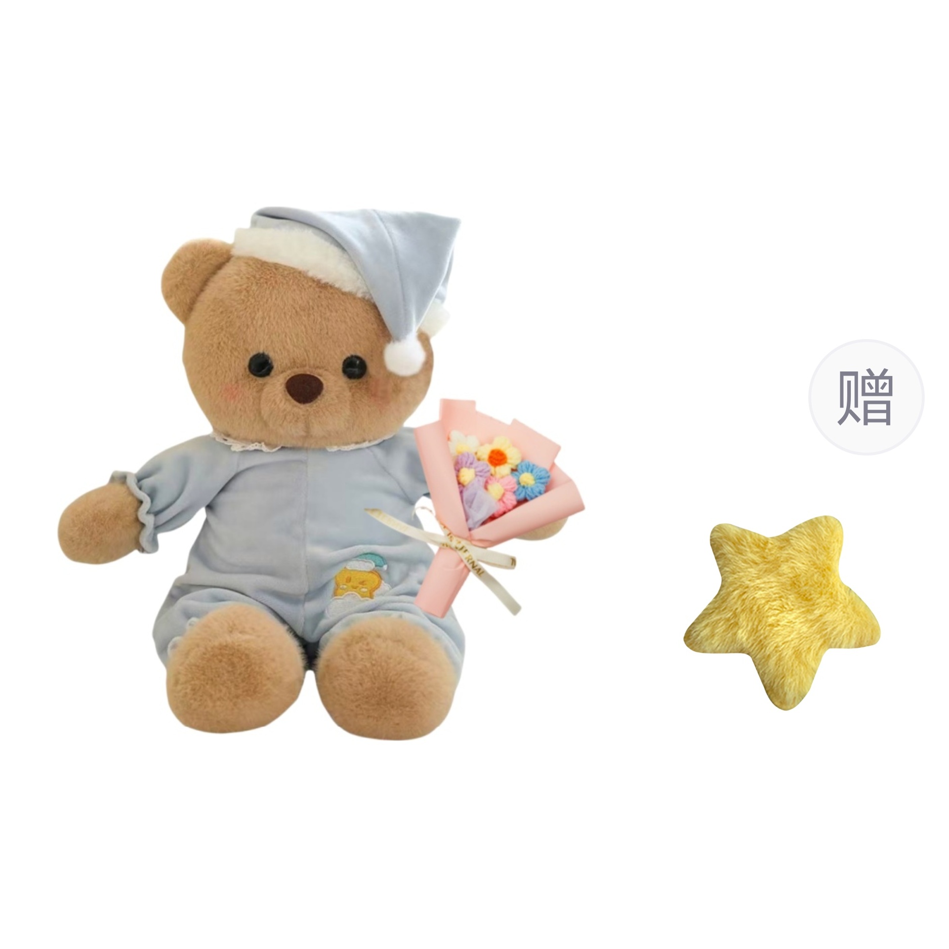Название продукта: Пижамный мишка-пижама синего цвета + букет из кремовых пуфов (включает заколку для волос в виде звезды)