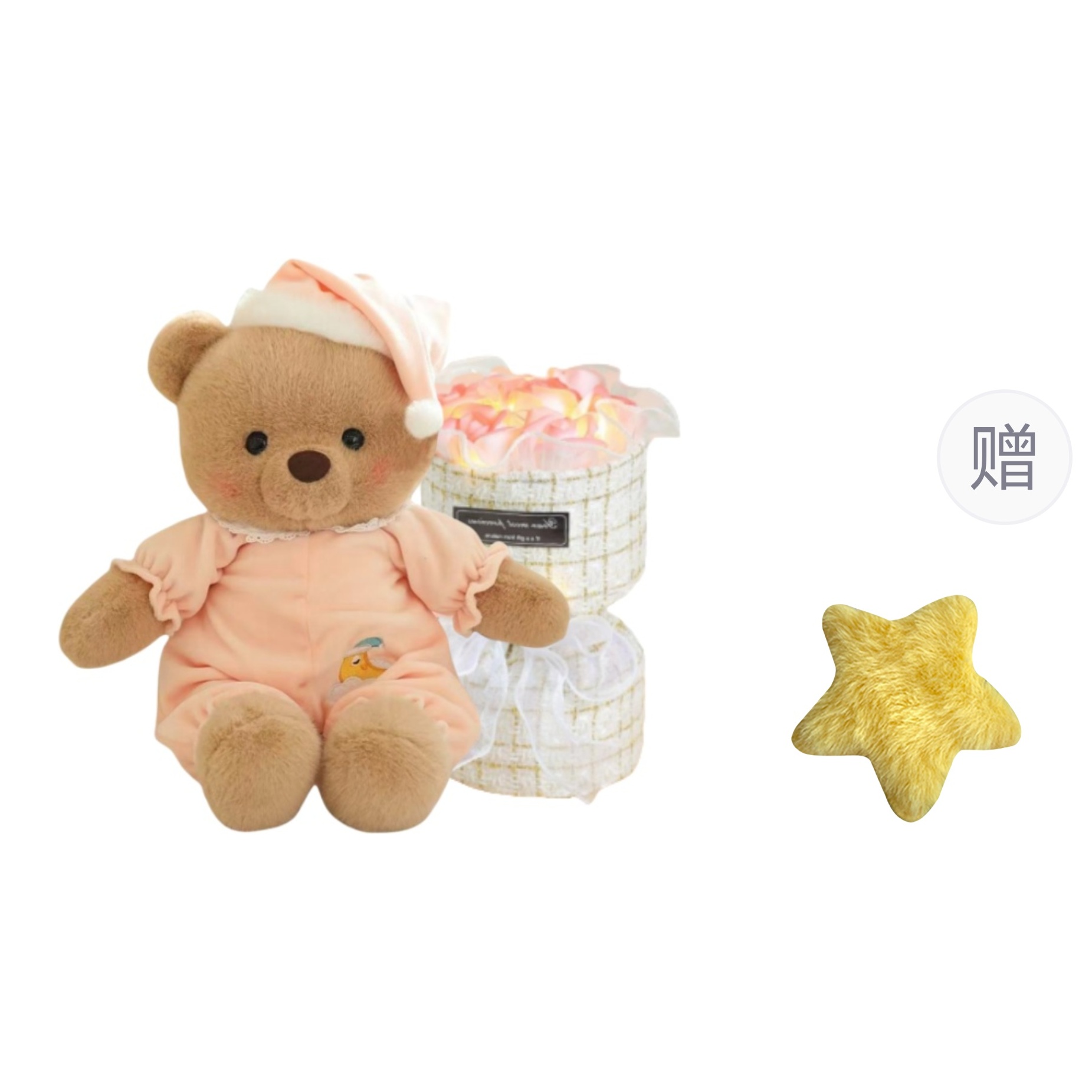 Название продукта: Пижамный мишка-розовый + розовый букет личи (в комплекте заколки для волос в форме звезд)