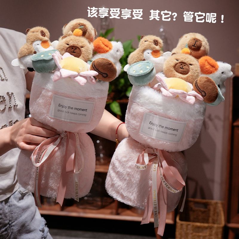 Плюшевая игрушка милый капибара с букетом 40 см MIANHUIYI