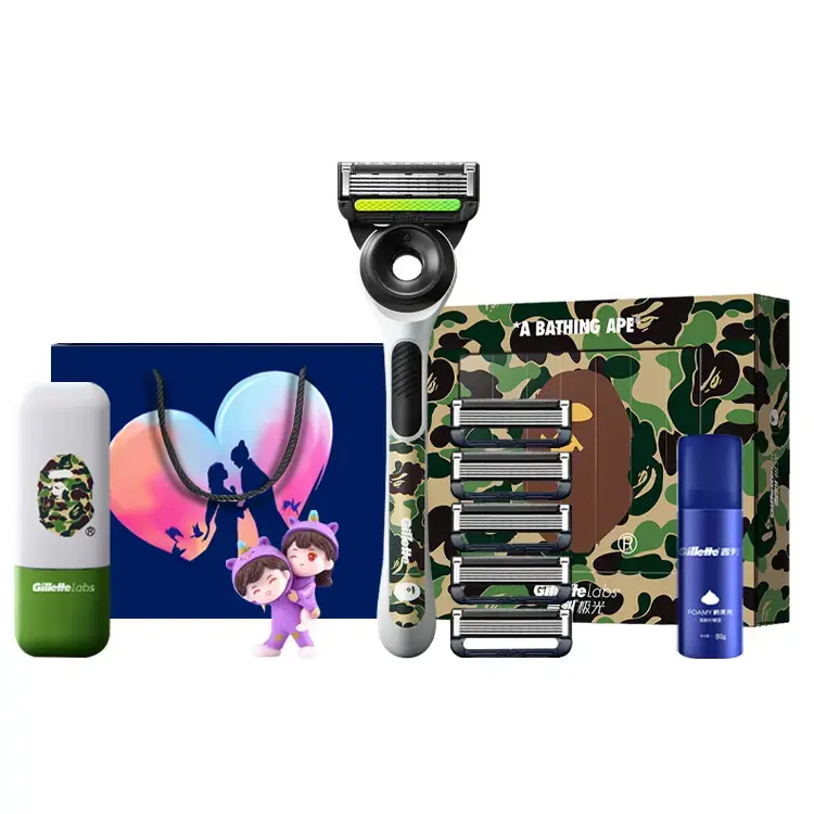 Номер: Многофункциональный набор Collaboration, 1 стойка для ножей, 5 лезвий + пена для бритья + парное украшение + сумка для покупок с праздником Циси
