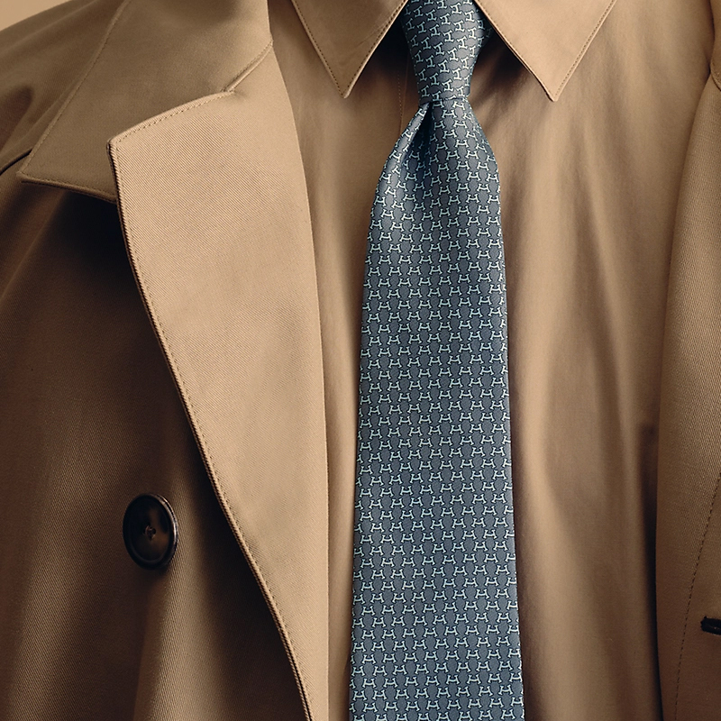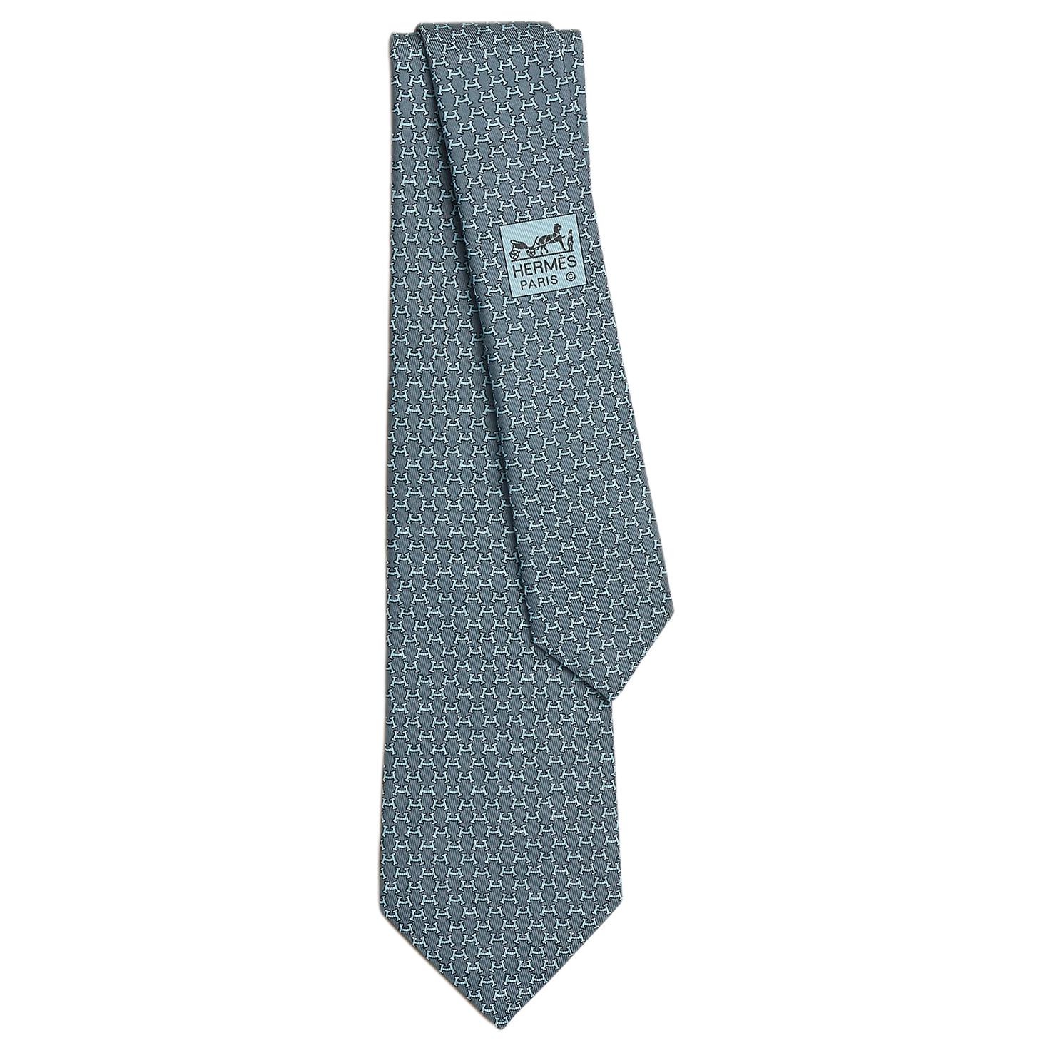 HERMES Мужской сине-серый шелковый галстук