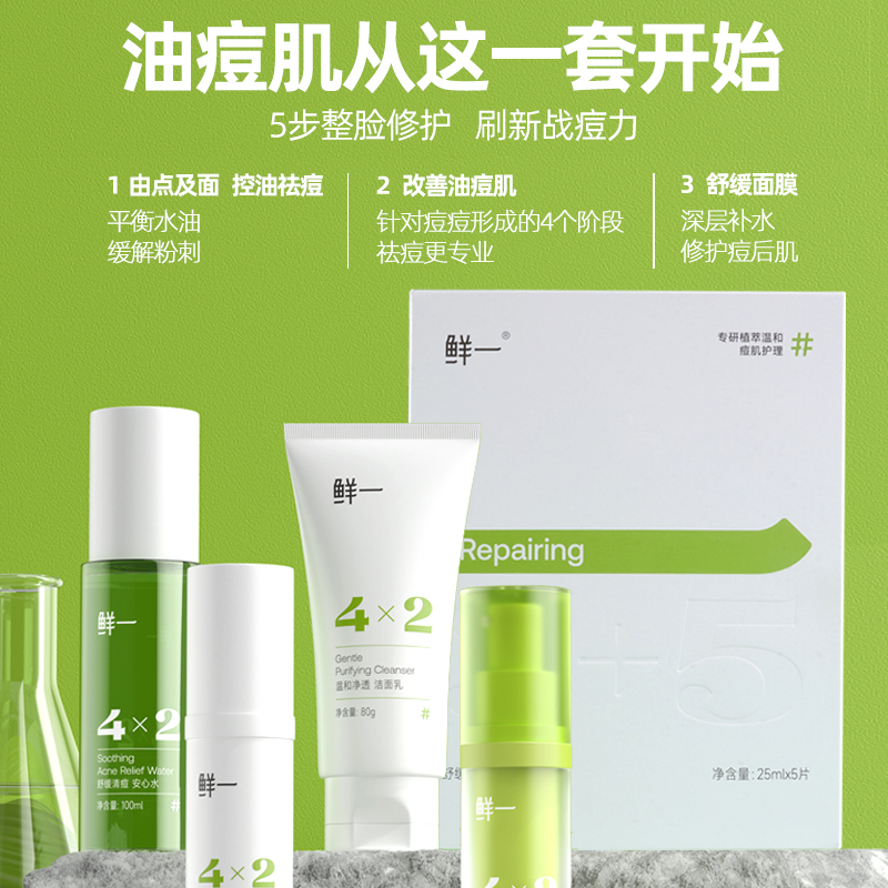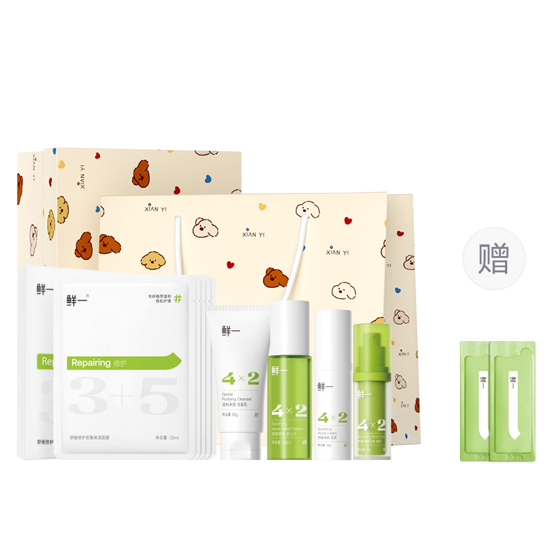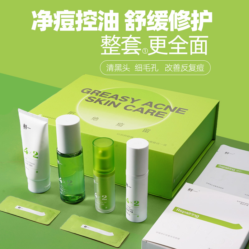 Версия: 【Зеленая подарочная коробка】Очищающее средство для лица + вода + крем + гель от акне + маска