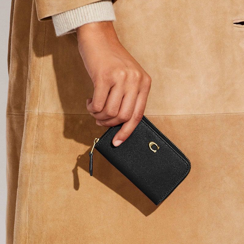 COACH Кожаный кардхолдер-клатч на молнии для женщин Black