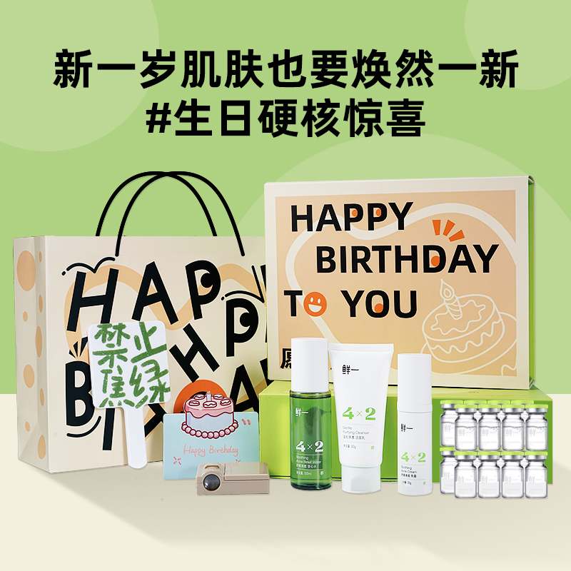 Нетто-содержимое косметического набора: подарочный набор на день рождения (очищающее средство + лосьон + сублимированная эссенция)