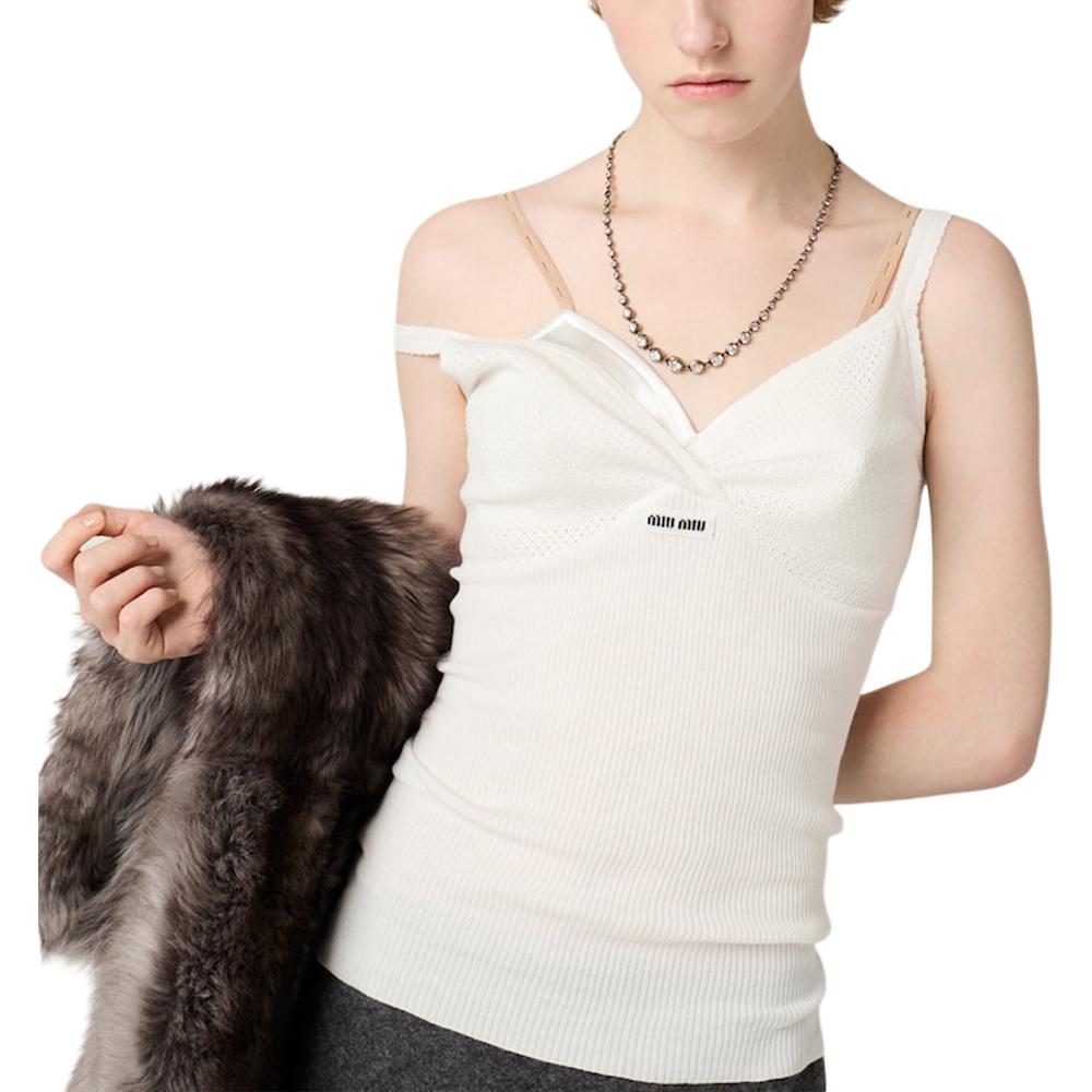 Топ из ребристого трикотажа MIU MIU, белый