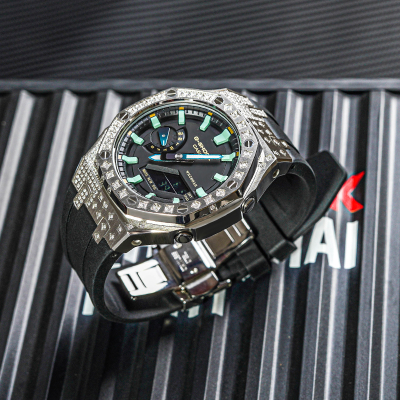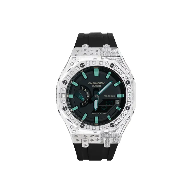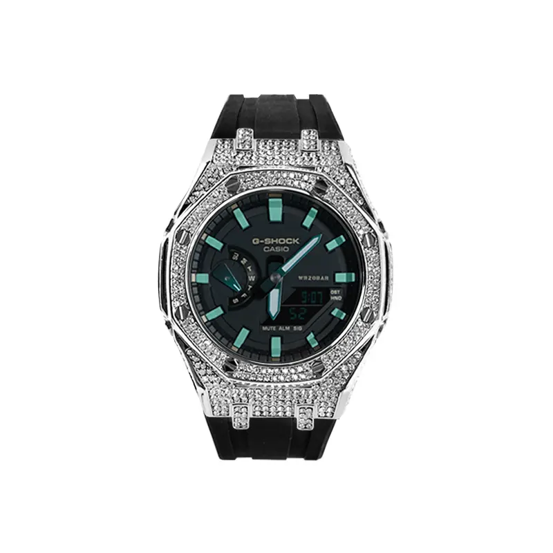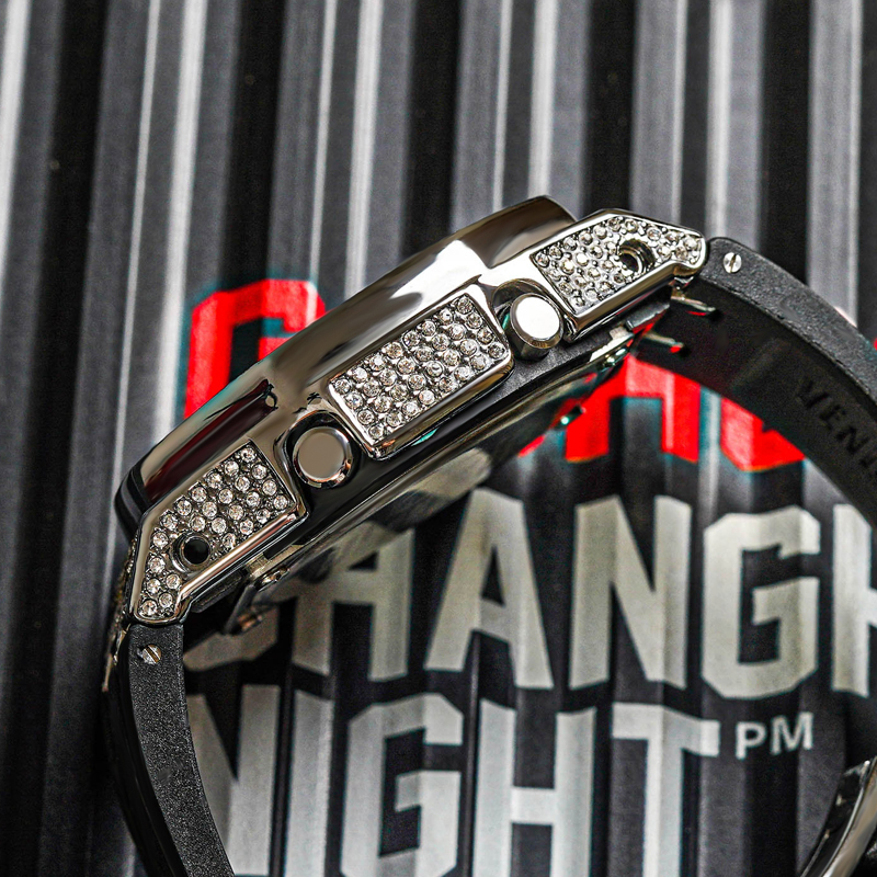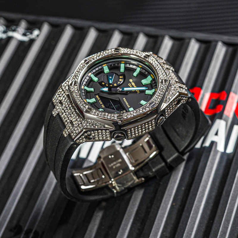 Цвет ремешка: черный бриллиантово-зеленая волна (серебристый ремешок со стразами)