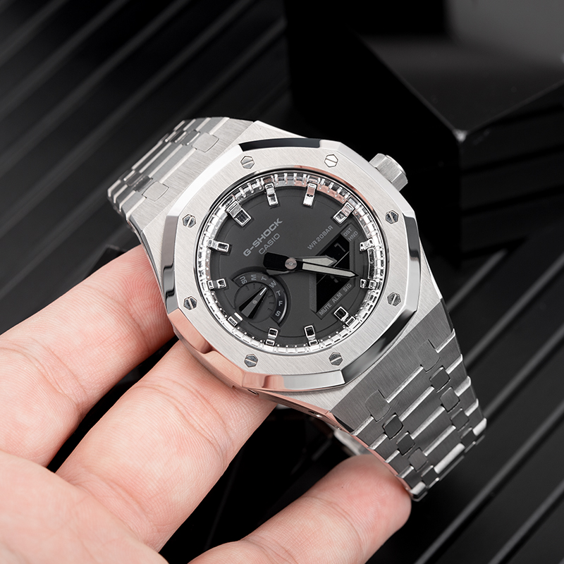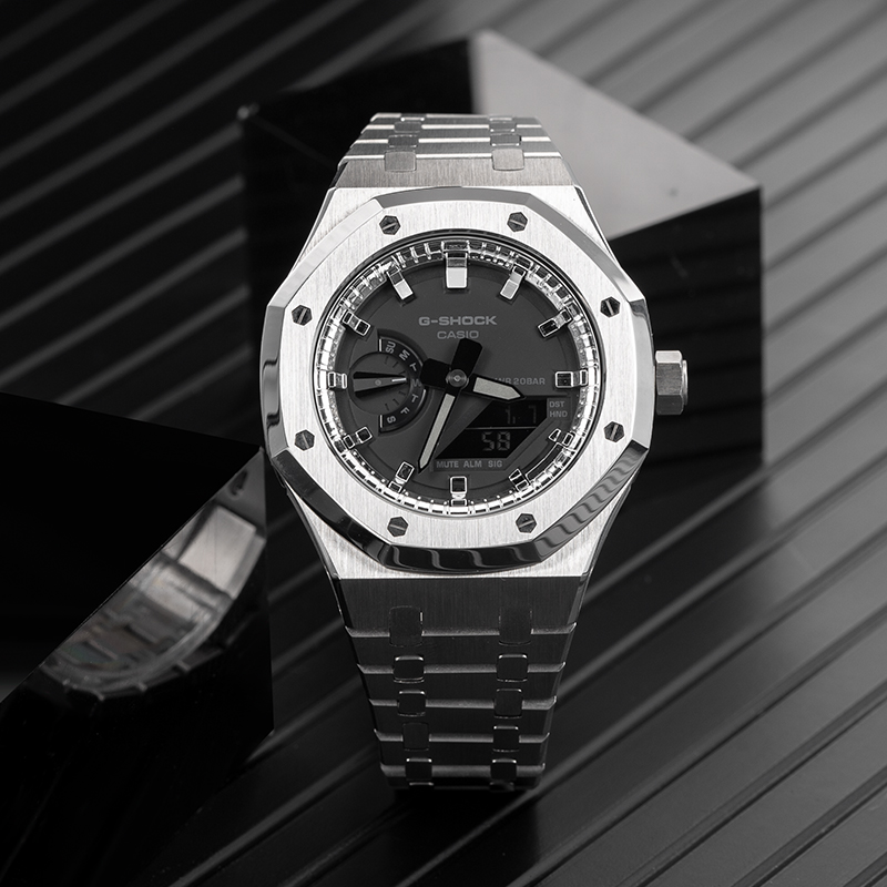 Сохраняет восьмиугольную форму, использовавшуюся в оригинальной модели DW-5000C. Комбинированная модель, разработанная в лаконичном дизайне, где устранено всё лишнее, но сохранена жесткая конструкция.