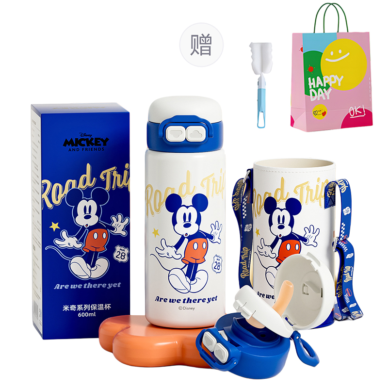 Цвет: 600 мл, королевский синий, Микки Маус, двойной стакан для питья, с чехлом для стакана и щеточкой для чистки
