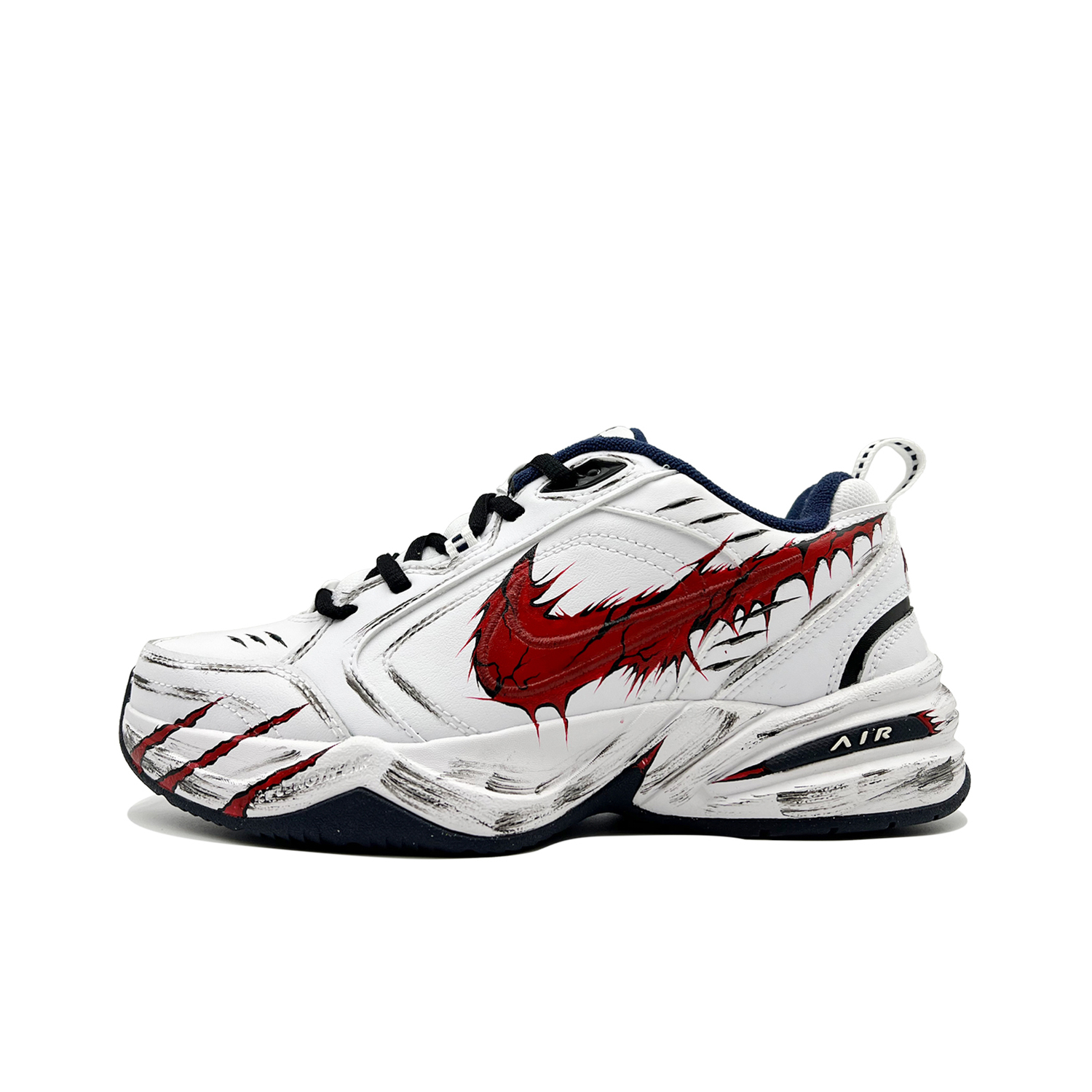 Эти кастомные кроссовки созданы на основе оригинальных Nike Air Monarch 4. Вдохновленные «симбиотическим торжеством дикой природы и тренда», они были созданы с использованием процесса окрашивания и чистки. Яркие красные следы когтей воспринимаются как конкретное воплощение дикой силы в модном контексте, подобно тому, как дикие элементы, нахлынувшие на волне моды, свободно оставляют свой след на обуви. Основанный на классическом силуэте, этот динамичный дизайн стирает границы между спортивным и уличным стилями, превращая эти кроссовки в продукт слияния дикой души и модной эстетики. Это уникальная обувь, созданная для тех, кто ценит индивидуальность и стремится продемонстрировать свой неповторимый дикий шарм в мире моды, разжигая визуальную и стилистическую страсть.