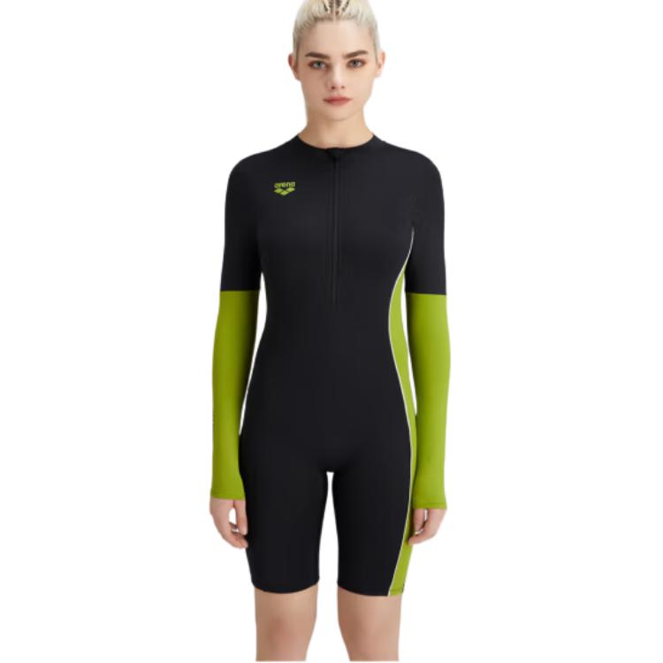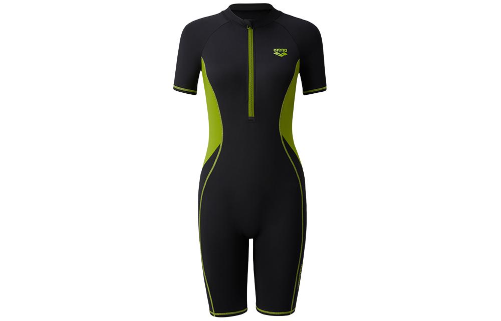 Цвет: черный, слитный купальник-боксер с короткими рукавами
