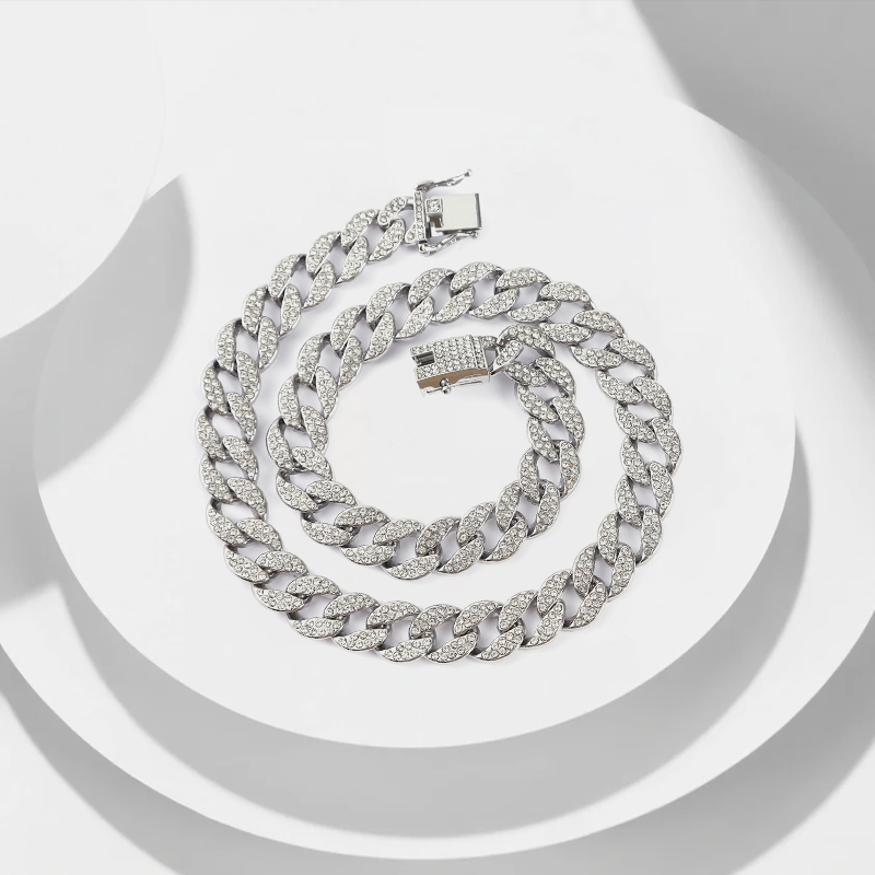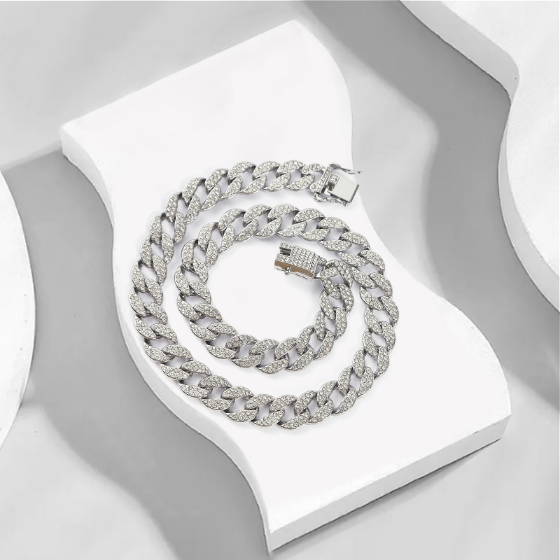 Цвет: серебристый, кубинское ожерелье со стразами