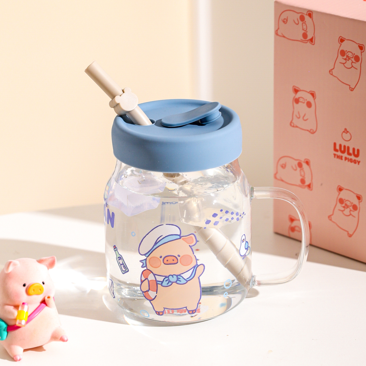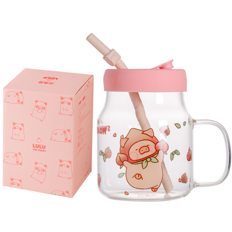 Цвет: Стеклянная трубочка-стаканчик Lulu The Piggy (персиковый Piggy)