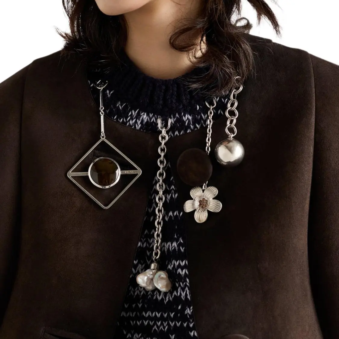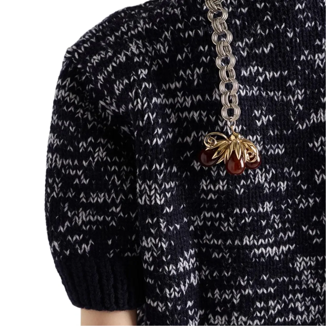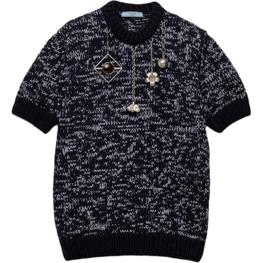 Свитер с коротким рукавом и подвесками PRADA, синий/белый 158 724₽