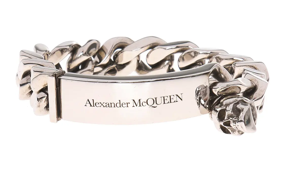 Браслет с черепом на цепи curb Alexander McQueen, серебро