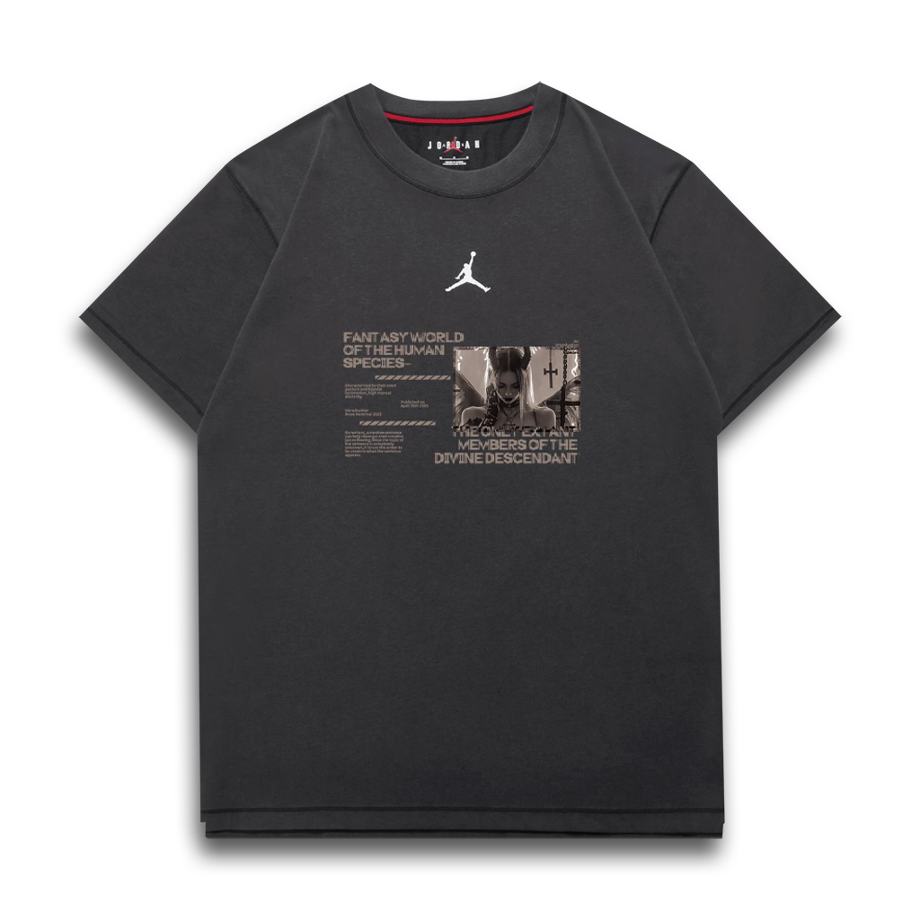 Этот индивидуальный предмет одежды представляет собой оригинальную быстросохнущую спортивную футболку Jordan DIR-FIT с круглым вырезом и принтом логотипа, в стиле American Retro, быстросохнущую, с короткими рукавами, унисекс, черного цвета. Оригинальный дизайн, доступный эксклюзивно на Dewu, значительно снижает вероятность того, что кто-то наденет такой же наряд.
