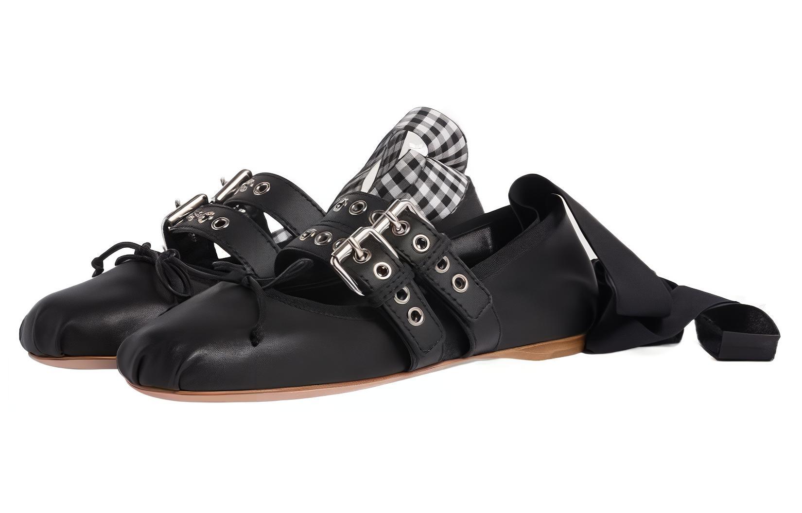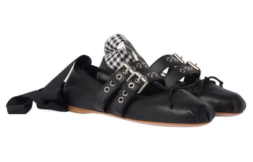 Кожаные балетки с пряжкой MIU MIU, черный 97 001₽