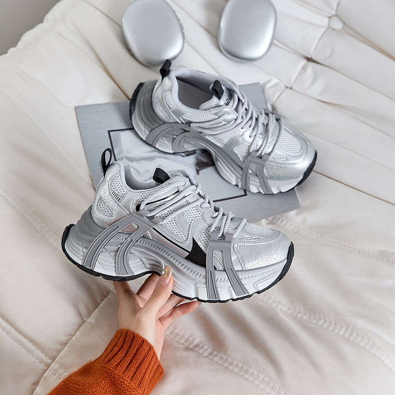 Дышащие массивные кроссовки Low Top женские POOQ, серебро