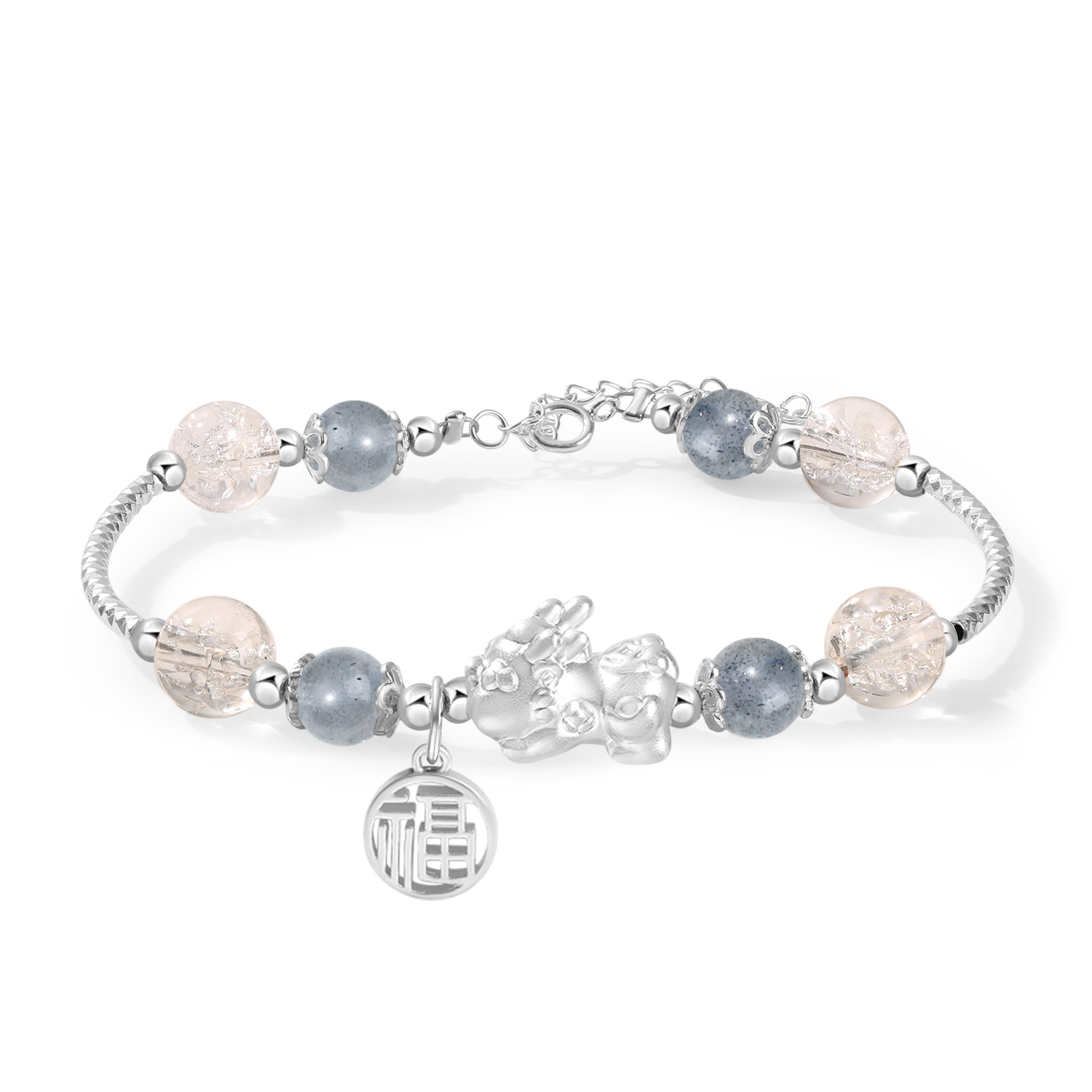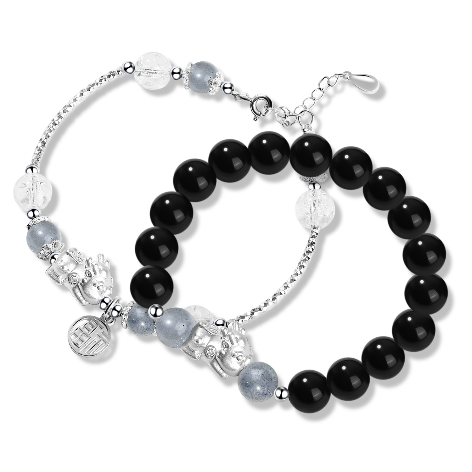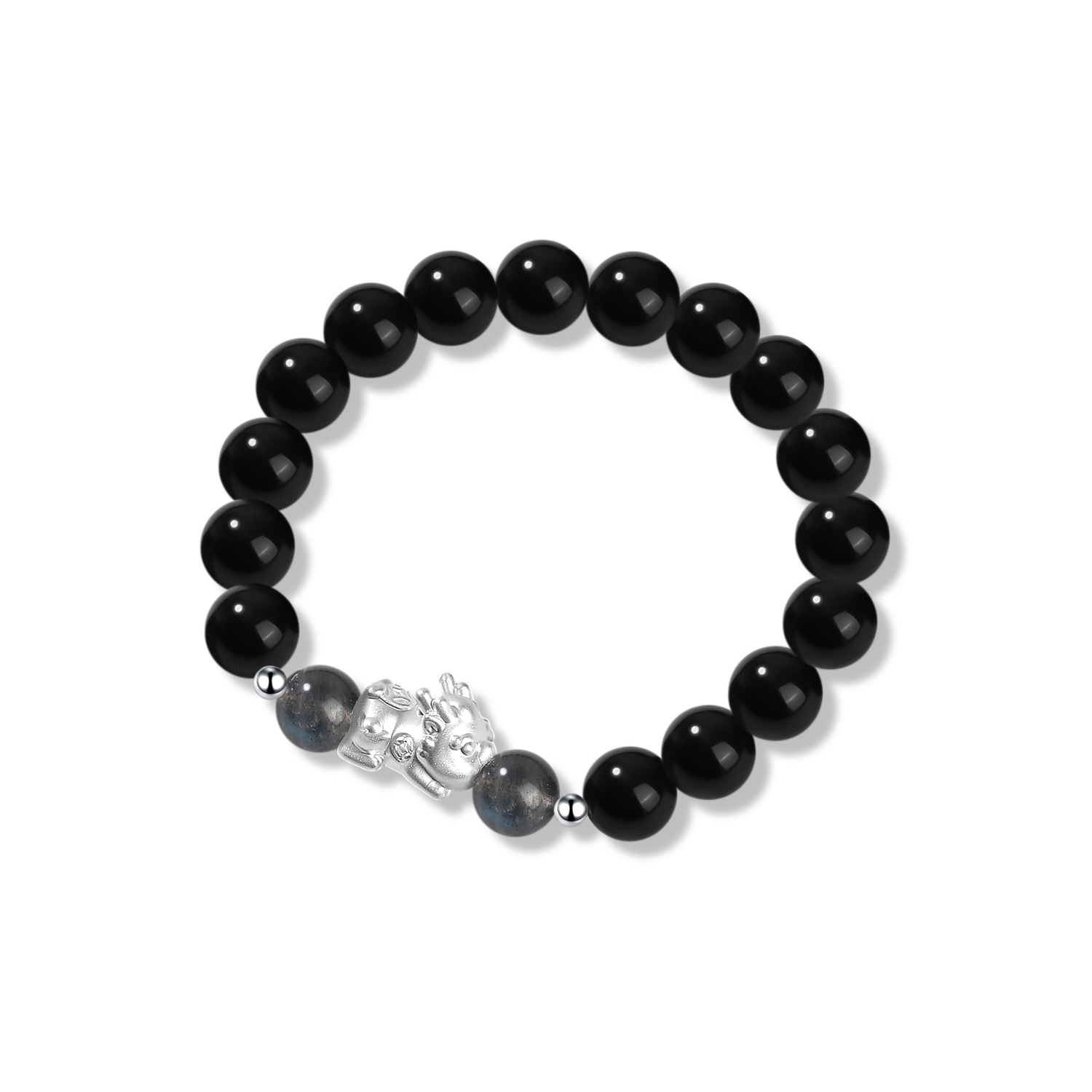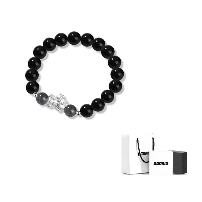 Стиль: Браслет с китайским символом «Животное-благополучие» из черного агата