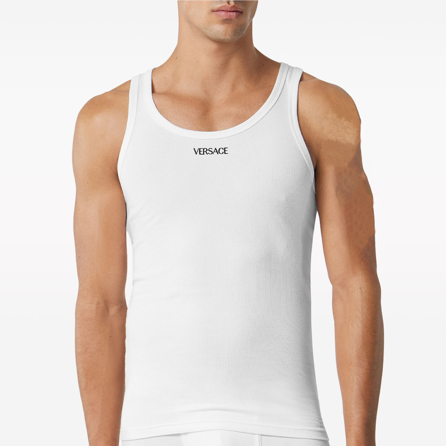 VERSACE Майка Logo Embroidered Sleeveless Ribbed Tank Top