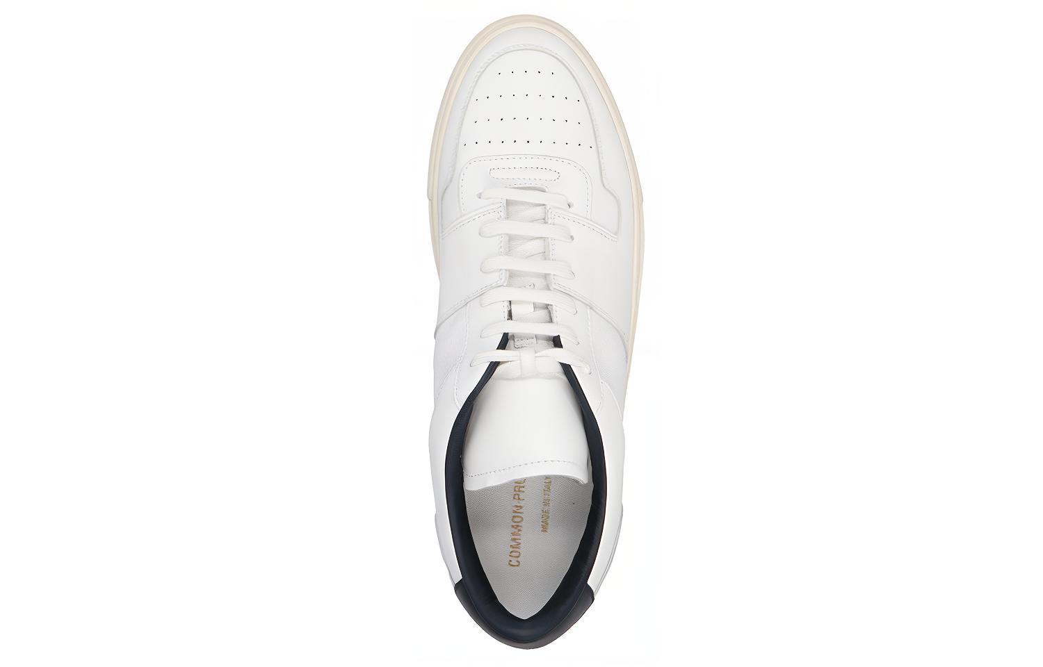 Кожаные кроссовки Common Projects Decades на шнуровке с резиновыми вставками, логотипом и контрастной вставкой на пятке.