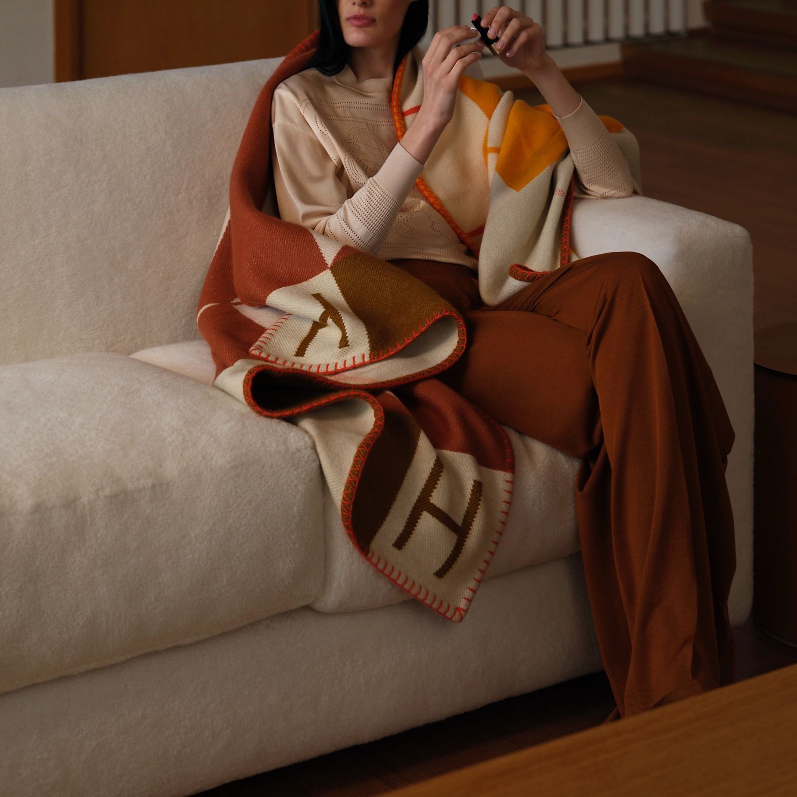 Пледы, пледы для дивана и флисовые одеяла HERMES, Apricot