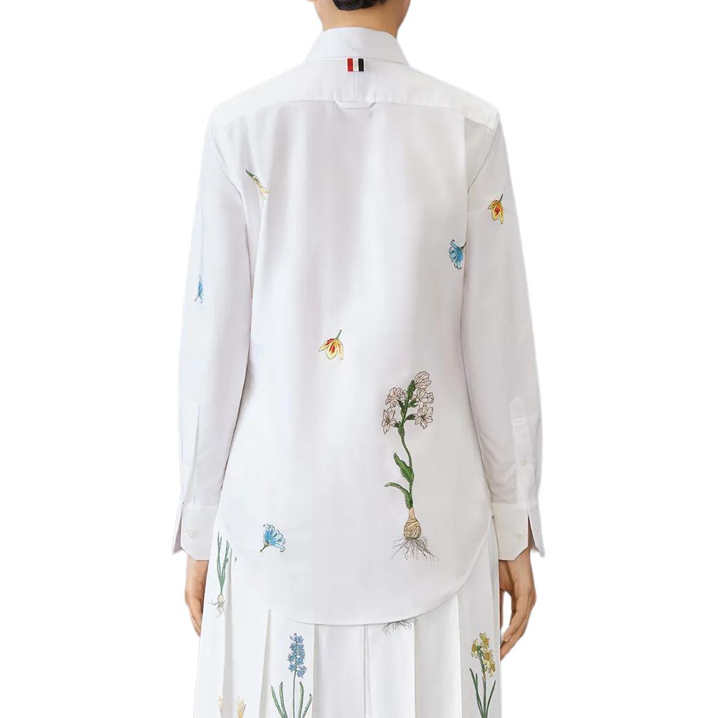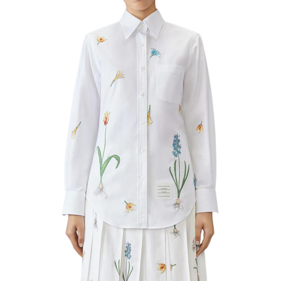 Хлопковая рубашка с цветочной вышивкой THOM BROWNE, белый 59 166₽