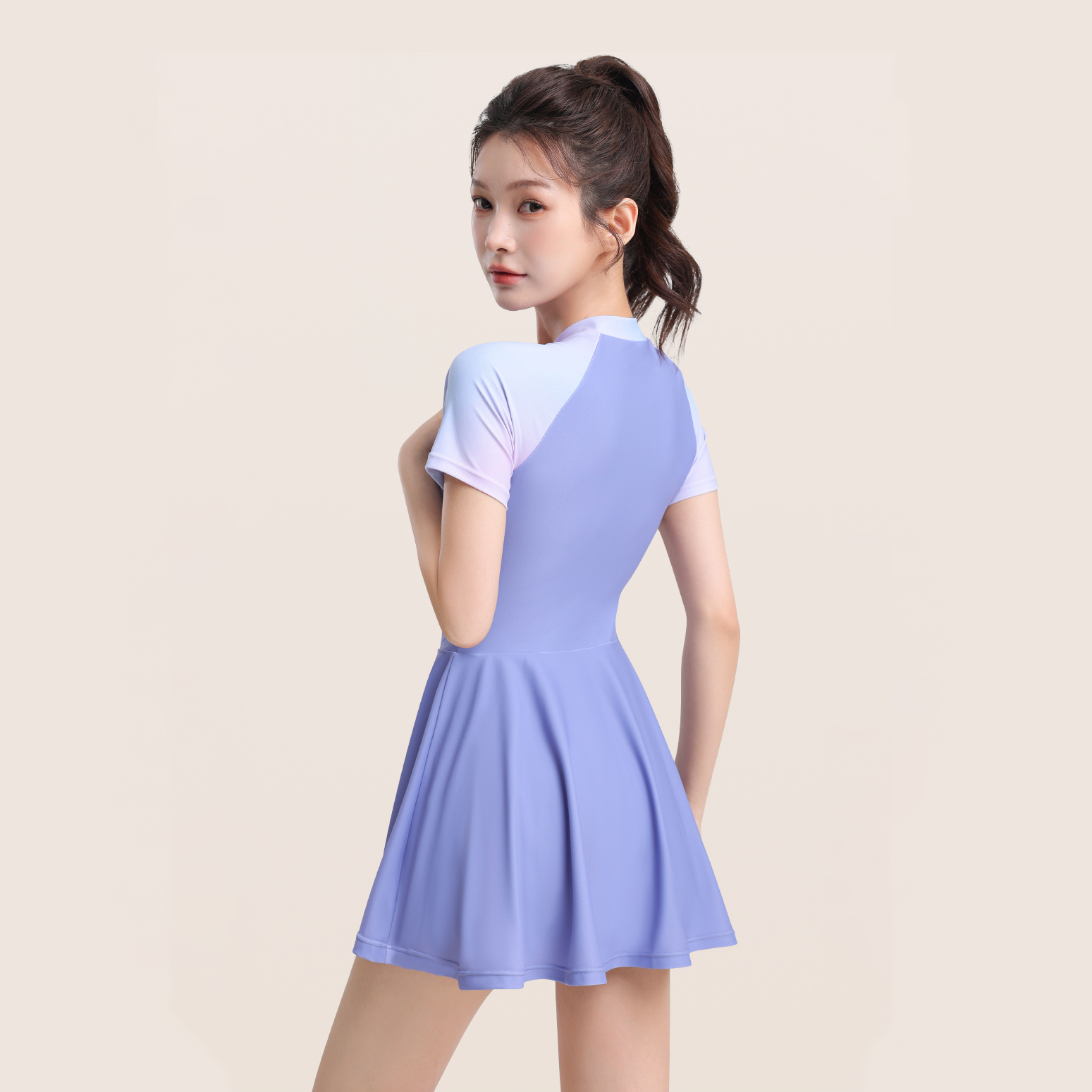 Цвет: градиентный фиолетовый купальник + шапочка для плавания + очки для плавания